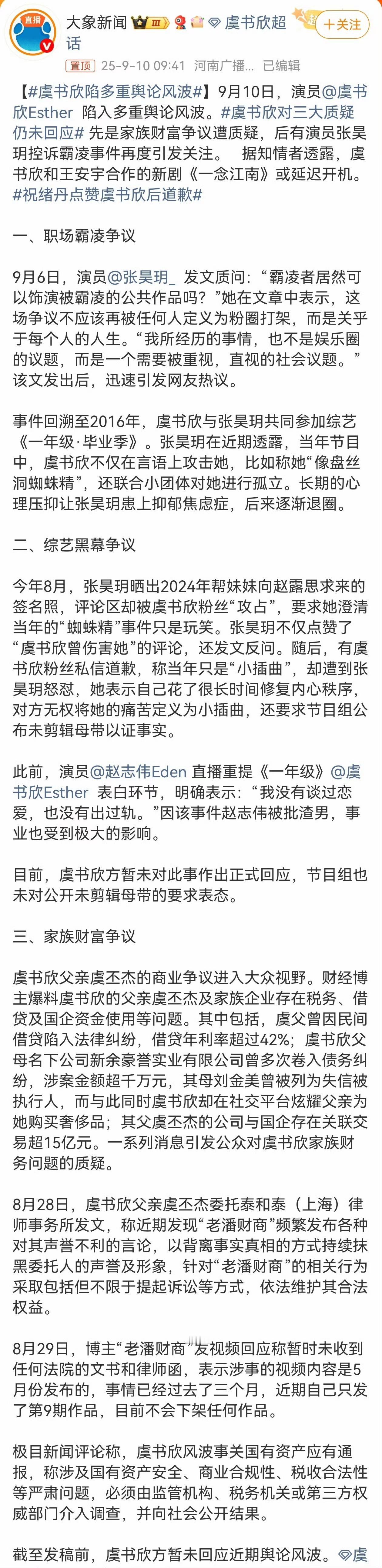 张昊玥实名指正虞书欣霸凌。 虞书欣不回应。