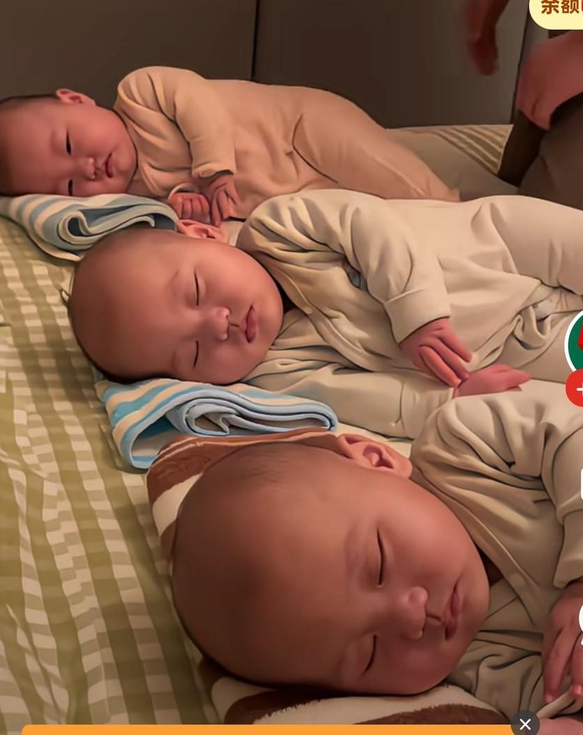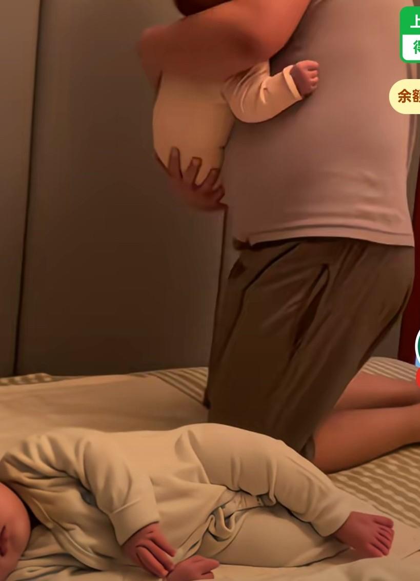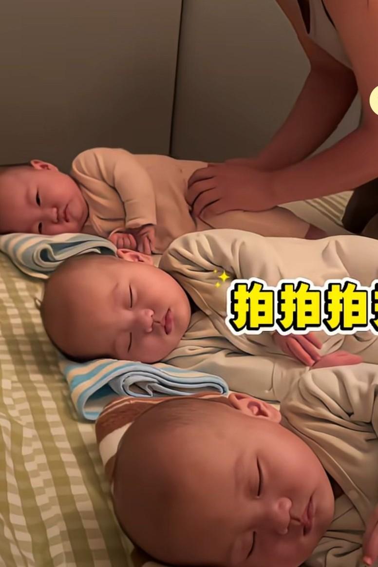三胞胎爸爸哄娃神招,爸爸抱着老三, 妈妈说轻点放爸爸, 放下孩子就开始大力的拍孩子的后背跟屁股, 看这力度,孩子浑身乱颤,有点重啊, 爸爸一会儿不拍了, 孩子的眼睛慢慢闭上睡着了。网友说,都拍迷糊了, 娃肯定说别拍了, 我睡还不行吗? 再不睡觉又要多挨揍了。 这再不睡就会拍成脑震荡了。这不是哄娃睡觉, 这是揍娃睡觉。