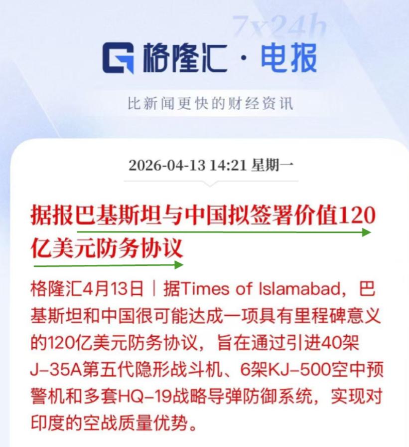 就在4月13日,巴基斯坦《伊斯兰堡时报》报道称,巴基斯坦和中国很可能即将敲定一项价值120亿美元的历史性防务协议。具体来说,这份采购清单包括:40架歼-35A第五代隐形战斗机、6架空警-500空中预警机,以及多套红旗-19战略导弹防御系统。 40 架是什么概念?不是买个三五架摆样子,是直接能组成好几个作战编队,把巴基斯坦整个领空都罩住,以后印度再敢在边境挑衅,巴铁直接就能起飞五代机,压得它喘不过气。而且价格也良心,平均一架才 8000 万美元,比美国的 F-35 便宜一半还多,也就只有巴铁这个 “铁哥们”,才能拿到中国这样的友情价。 除了歼 - 35A,还有 6 架空警 - 500 预警机,这玩意儿就是空中的 “千里眼 + 指挥中心”。咱们平时看电视剧,打仗的时候要靠人指挥,而空警 - 500 能在几百公里外,同时看到上百个目标,不管是飞机还是导弹,都逃不过它的眼睛,还能直接指挥歼 - 35A 去作战,相当于给巴铁空军装了个 “超级大脑”。 以前巴铁的预警机性能一般,有时候还会漏目标,这次换了空警 - 500,直接补齐了短板。6 架刚好能保证 24 小时不中断预警,白天黑夜都能盯着边境,印度不管搞什么小动作,都能被当场抓包,再也没法偷偷摸摸搞突袭。 最狠的还是多套红旗 - 19 反导系统,这就是巴铁的 “金钟罩铁布衫”!大家都知道,印度一直靠着弹道导弹威慑巴铁,那些导弹能覆盖巴铁全境,以前巴铁只能被动挨揍,现在有了红旗 - 19,就能直接把印度的导弹拦在天上,不管是常规导弹还是高超音速导弹,都能给它打下来,相当于给巴铁的核心城市、军事基地,撑起了一把无形的保护伞。 巴基斯坦经济也不算好,怎么拿得出 120 亿美元?其实这里面有两个关键,一是中国给了最大力度的优惠,毕竟是铁哥们,能帮就帮;二是有中东国家帮忙,比如沙特,巴铁平时帮沙特维护安全,沙特就出钱支持巴铁买装备,相当于 “沙特出钱、巴铁出枪”,一举两得。 还有人觉得,这就是一笔普通的军贸交易,其实不然,这背后全是中巴的 “铁关系”。从以前的枭龙战机,到后来的歼 - 10CE,再到现在的五代机、预警机、反导系统,中国从来不是只卖装备,而是从头到尾帮巴铁搭建完整的军事体系,从装备培训到后勤保障,一条龙服务,这才是真正的 “全天候友谊”,不是嘴上说说,是真金白银的支持。 再说说对南亚的影响,以前印巴的空中力量还能勉强打个平手,印度靠着人多、装备多,还能嚣张一下。但这次巴铁买了这些装备,直接实现了 “弯道超车”—— 印度现在连一架五代机都没有,最快也要到 2035 年才能造出来,未来十年,巴铁的空中力量会全面压制印度,南亚的军事平衡,彻底被打破了。 对中国来说,这笔大单也意义重大。以前国际高端军贸市场,都是美国和俄罗斯说了算,咱们的装备很难挤进去。这次歼 - 35A、空警 - 500、红旗 - 19 出口巴铁,相当于给中国军工打了个 “活广告”,只要巴铁用得好,以后沙特、阿联酋这些中东富国,肯定也会来买,中国军工就能彻底打开国际市场。 当然,现在还有个小悬念,目前只有巴基斯坦媒体报道了这件事,中巴官方还没正式确认。但按照中巴这么多年的合作关系,还有巴铁的防务需求,这笔大单大概率能成,就等着官方官宣就好。 其实从枭龙战机到现在的 120 亿美元大单,中巴的合作一直在升级,从低端装备到高端体系,从简单帮忙到深度绑定,这不仅仅是军贸交易,更是两个国家互相扶持、共渡难关的证明。 以后这些装备交付了,巴铁的国防实力会更加强大,再也不用怕印度的威胁,而中巴的友谊,也会在一次次合作中,越来越铁。