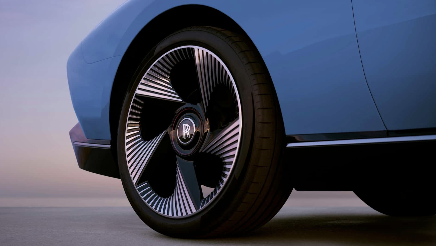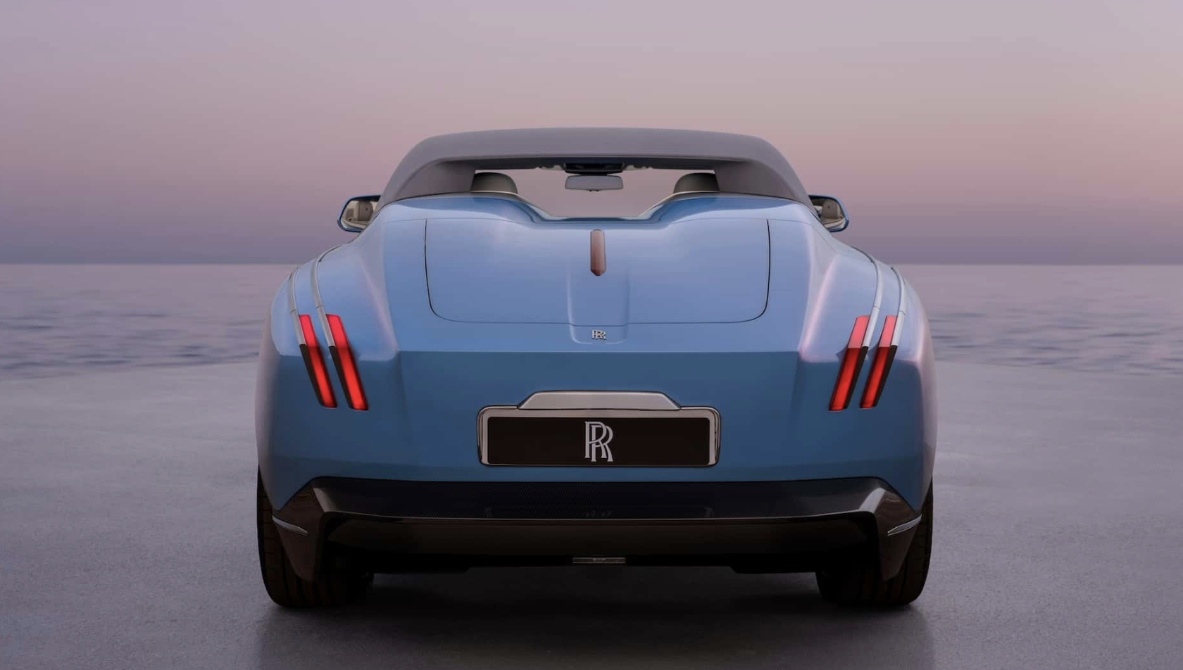 车身采用浅蓝色涂装,并融入了微妙的红色金属颗粒。这种红色调是对劳斯莱斯20世纪20年代实验原型车的致敬,车标上也采用了这种红色。此外,车身还覆盖着一层几乎难以察觉的蓝色碳纤维饰面。
