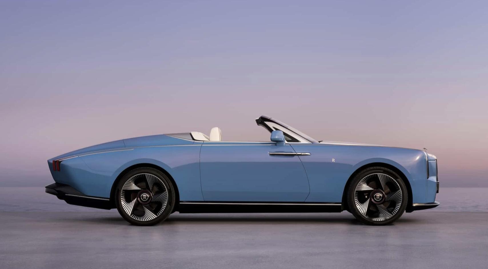 它还拥有令人惊艳的敞篷设计,其灵感源自劳斯莱斯之前的定制车型。它运用了装饰艺术时期的流线型现代主义设计理念,这种设计风格在20世纪20年代和30年代风靡一时。不妨想象一下蝙蝠侠系列中的蝙蝠车。