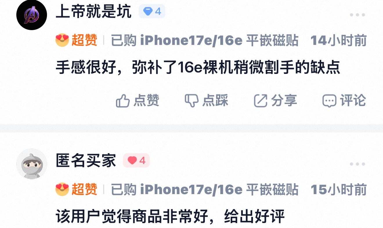 17e/16e平嵌磁贴大家也陆续收到了有更强的磁力吸附,还有大弧度的侧边设计,