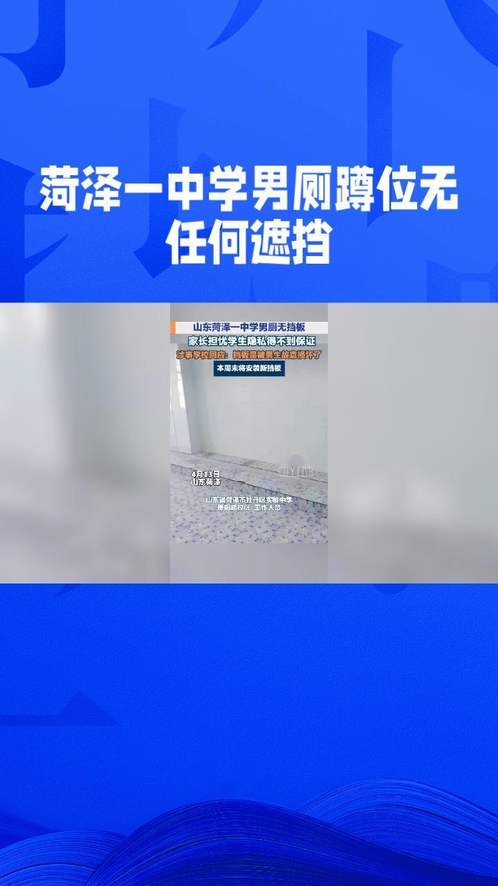 男厕蹲位竟无任何遮挡,学生隐私如何保障?校方紧急回应。 近日,山东菏泽牡丹区实验中学贵阳路校区被曝男生厕所内蹲位未设置任何隔断,形似“大通间”,学生如厕时“一览无余”。此情况引发家长对学生隐私权和身心健康的担忧。校方回应称,男厕所此前安装有隔挡,但因部分隔挡被学生损坏,存在划伤学生的安全隐患,学校近期进行了拆除。目前,学校已紧急联系制作公司定制新挡板,部分男厕挡板已安装完毕,剩余正在制作中。施工期间,校方表示大部分学生可前往南楼厕所解决如厕问题。 高校卫生间