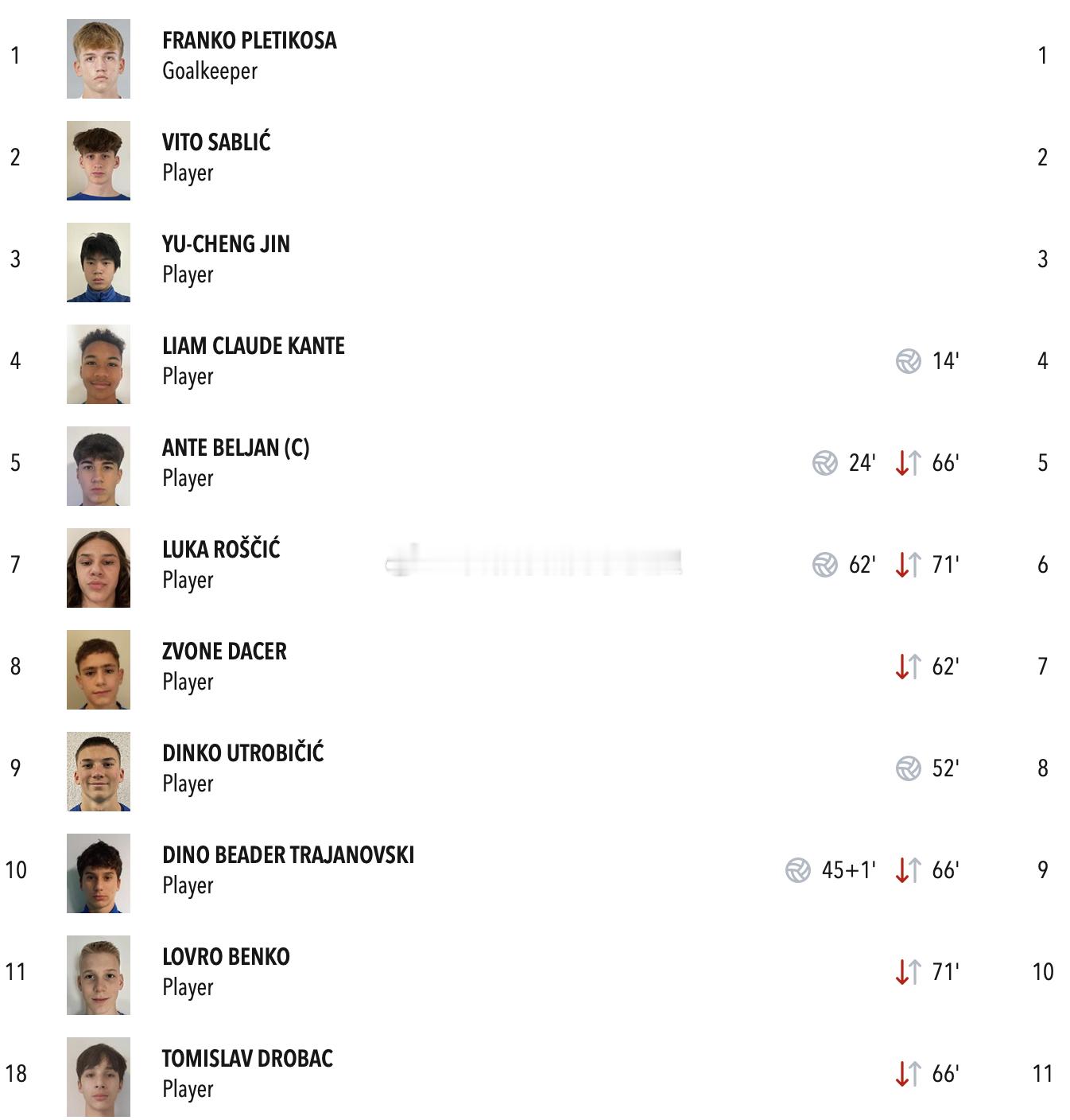 克罗地亚U17全国联赛萨格勒布火车头6-1战胜希巴利亚中国球员金昱成首发出战