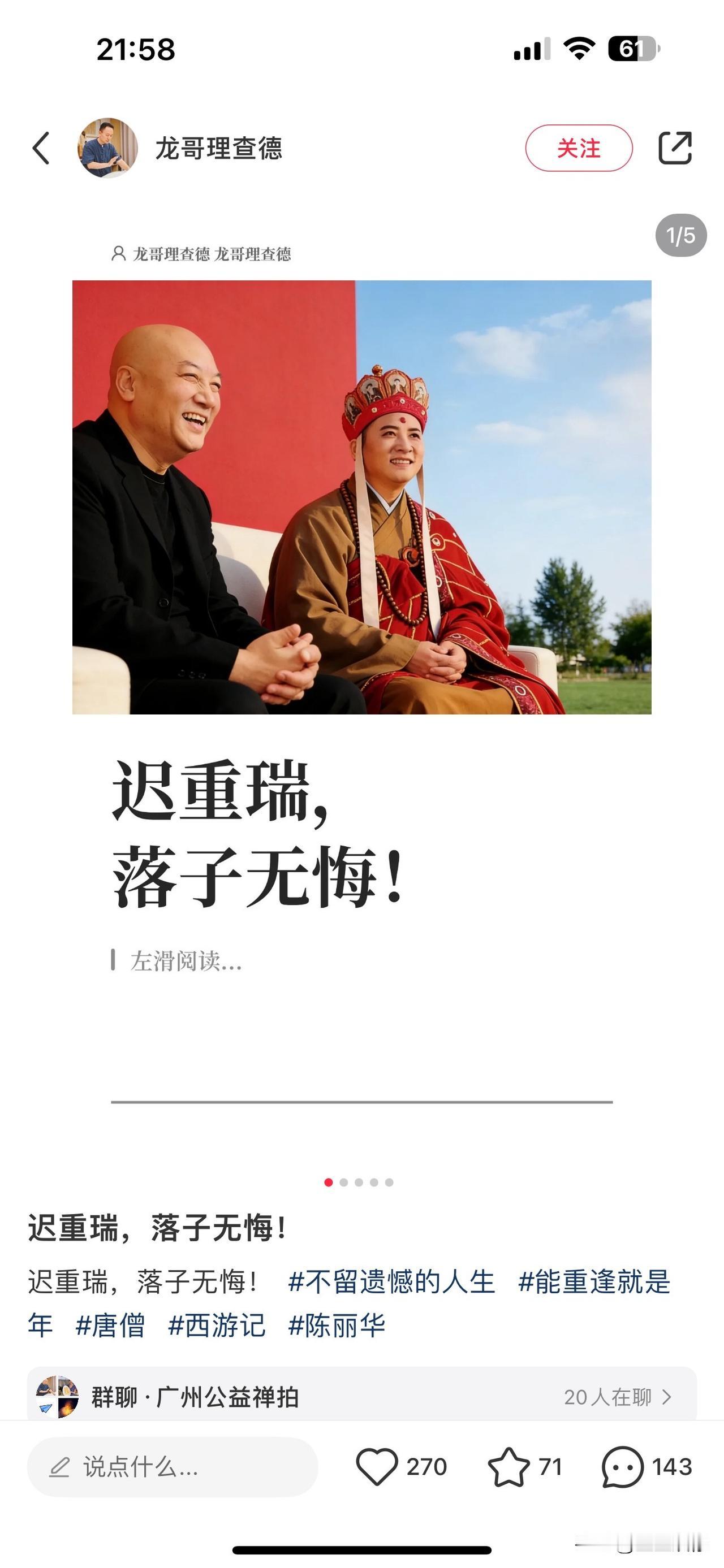 总有人说迟重瑞38岁嫁陈丽华是吃软饭,可没人想过,男人最折腾的年纪,他早过了。唐僧的角色已经让他站到了演员的顶峰,再走下去也难有更高风景。不如换条路,用半生安稳换一世体面。 他的选择从来不是依附,而是在人生岔路口,选了一条更适合自己的路。落子无悔,这才是真正的通透。