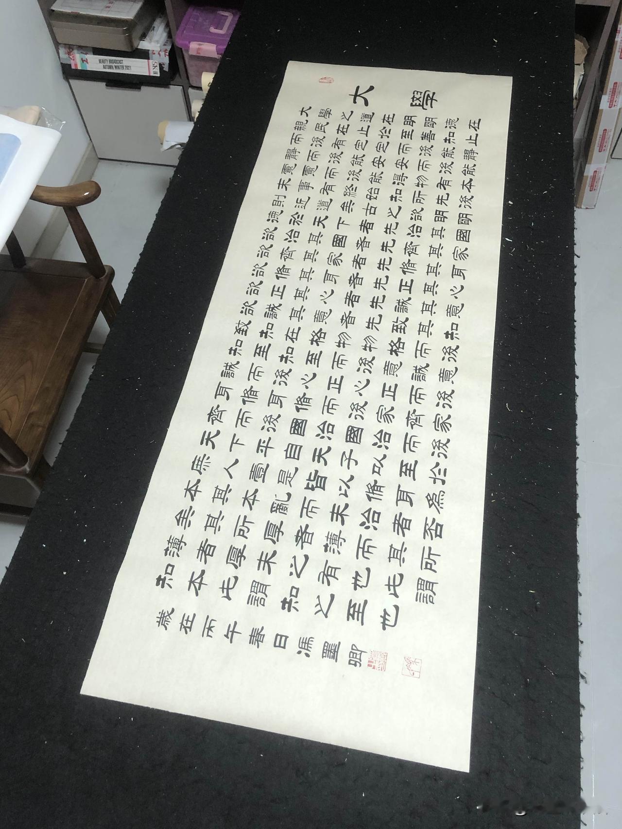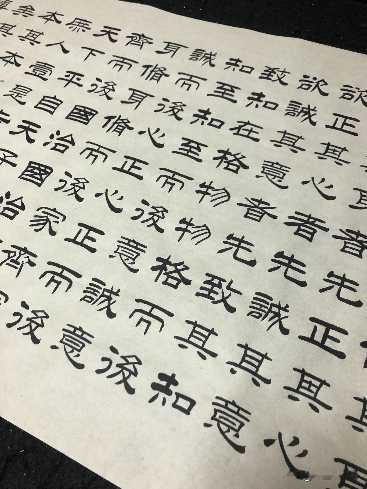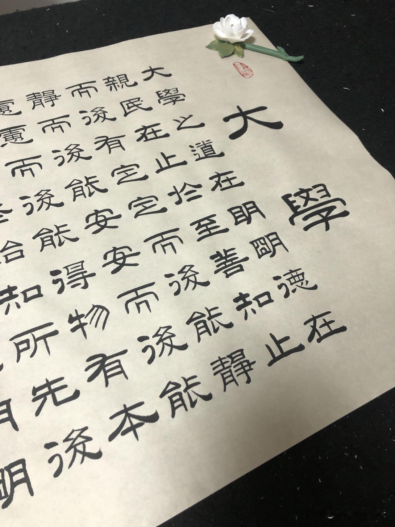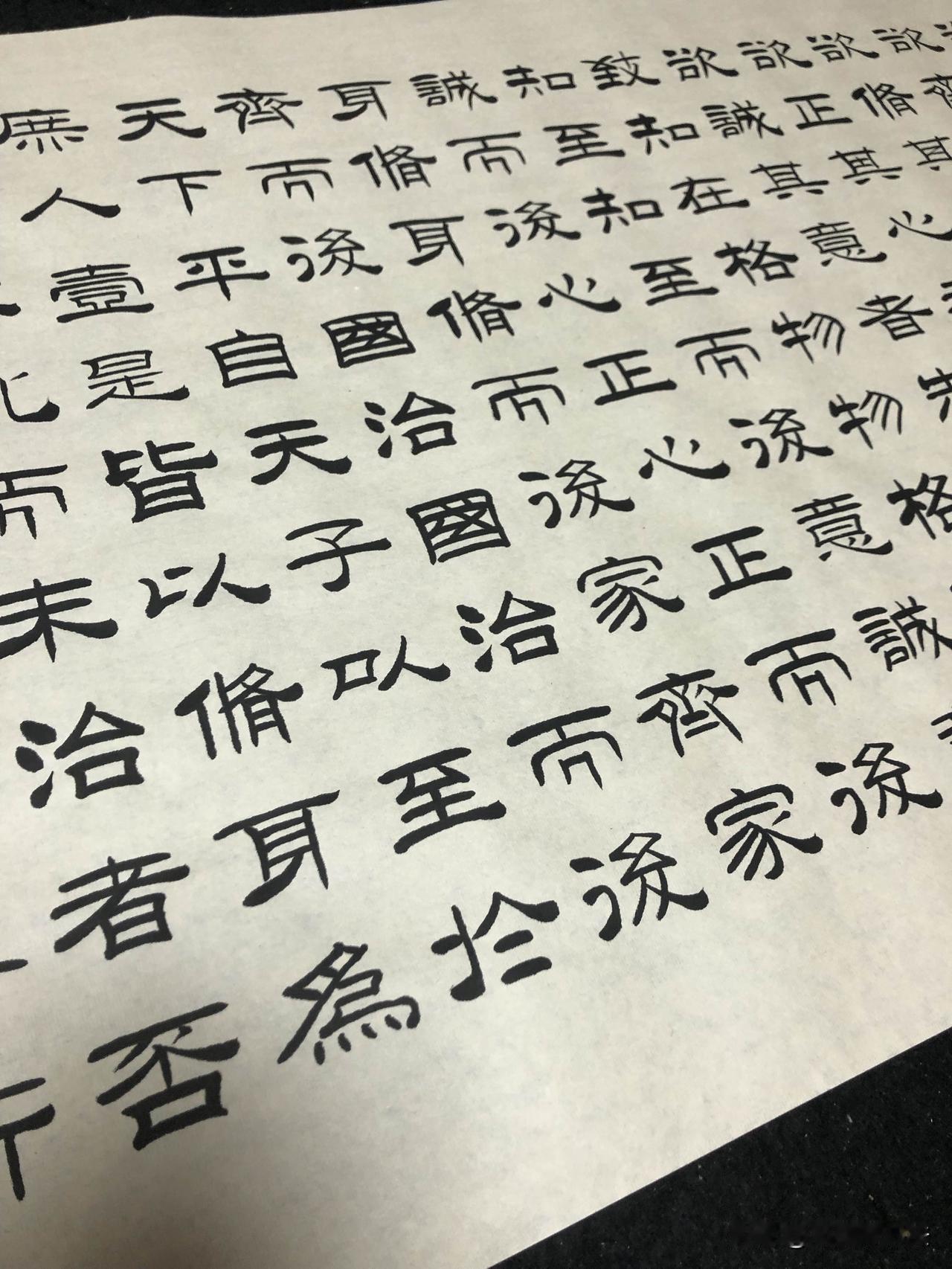不打格写《大学》,单字4厘米,原文如下:大学之道,在明明德,在亲民,在止于至善。 知止而后有定;定而后能静;静而后能安;安而后能虑;虑而后能得。 物有本末,事有终始。 知所先后,则近道矣。 古之欲明明德于天下者,先治其国。 欲治其国者,先齐其家。 欲齐其家者,先修其身。 欲修其身者,先正其心。 欲正其心者,先诚其意。 欲诚其意者,先致其知。 致知在格物。 物格而后知至,知至而后意诚,意诚而后心正,心正而后身修,身修而后家齐,家齐而后国治,国治而后天下平。 自天子以至于庶人,壹是皆以修身为本。 其本乱而末治者,否矣。 其所厚者薄,而其所薄者厚,未之有也。 此谓知本,此谓知之至也。书法作品图片行于学