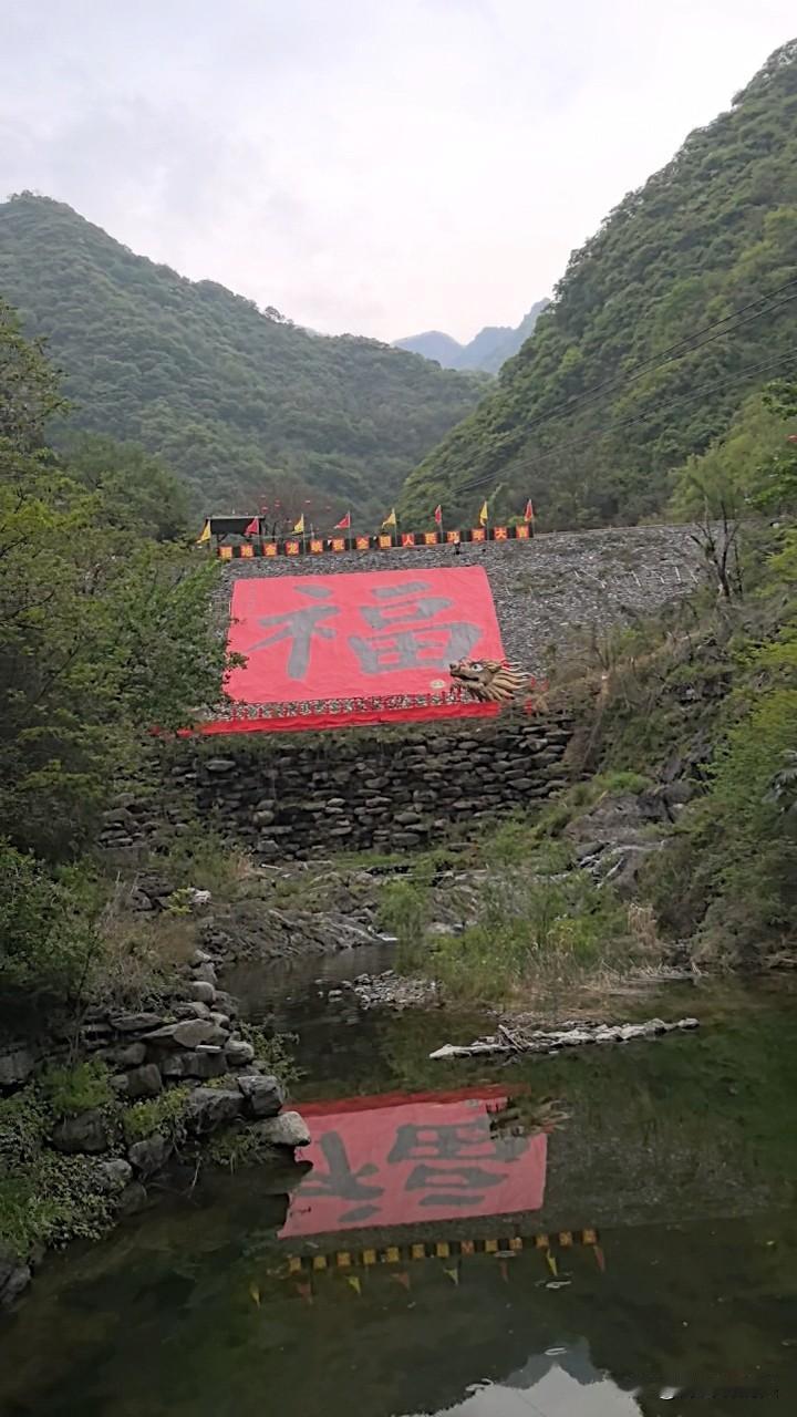 仔细看了看,这个景色还是4A景区。抬头望,郁郁葱葱的秦岭山深不见底,山间的潺潺溪流中传来阵阵鸟鸣。这里应是游玩的好地方! 随意转了转,还能看到这里春节搞的新春旅游的庆祝活动痕迹。如红色的灯笼,状态各异的动物。春节时这里的热闹应该可以想象得到,遗憾的是今天,在这里看到的景区好多商店,都关了门。