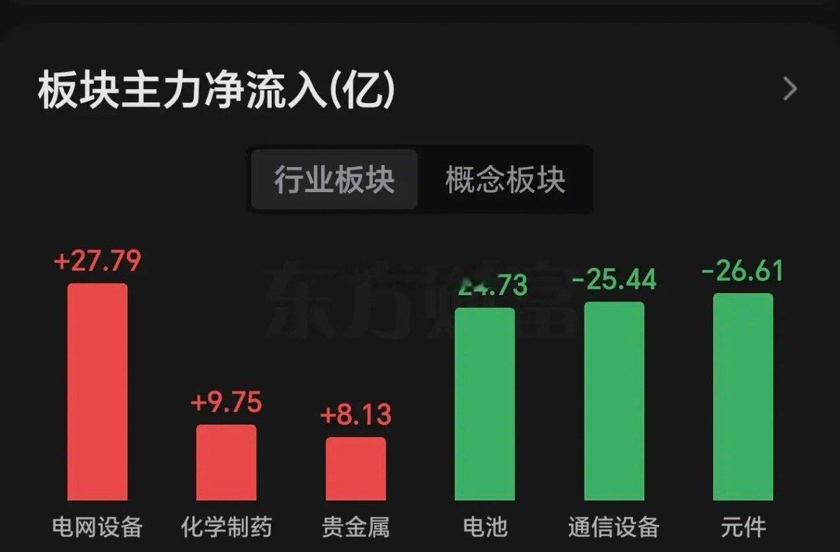 15日午间看盘及主力资金动向。今天早盘A股高开冲高回落,主要是上证指数接近60日线压力位,这个位置不好突破,资金遇阻而退。创业板指数再创新高,不过偏离5日线有点远短线有回调需求,连续两天提示注意止盈。 盘面上看,港股通创新药,电网设备,恒生科技指数,卫星产业,科创芯片,游戏,cpo,等板块涨幅居前。 能源金属,化工,新能源车及电池概念,煤炭,软件等板块跌幅居前。 主力资金流入比较多的板块有 电网设备,创新药,贵金属,工业金属,军工电子商业航天,汽车零部件。 新能源汽车,电池概念,5G,云计算,机器人,半导体芯片,电子元件,光伏设备等板块主力资金流出比较大。 目前亚太股市全面反弹,A,股今天有点绷不住了,想跳水。工业金属盘中由涨2%转跌,看来主力资金不想玩这个,同样回调幅度的电网设备今天表现相对强势。cpo还在强上涨,主力资金却持续流出,看谁接最后一棒。 两市成交额1.23万亿元,比昨天放量820亿元,主力资金流出240亿元。