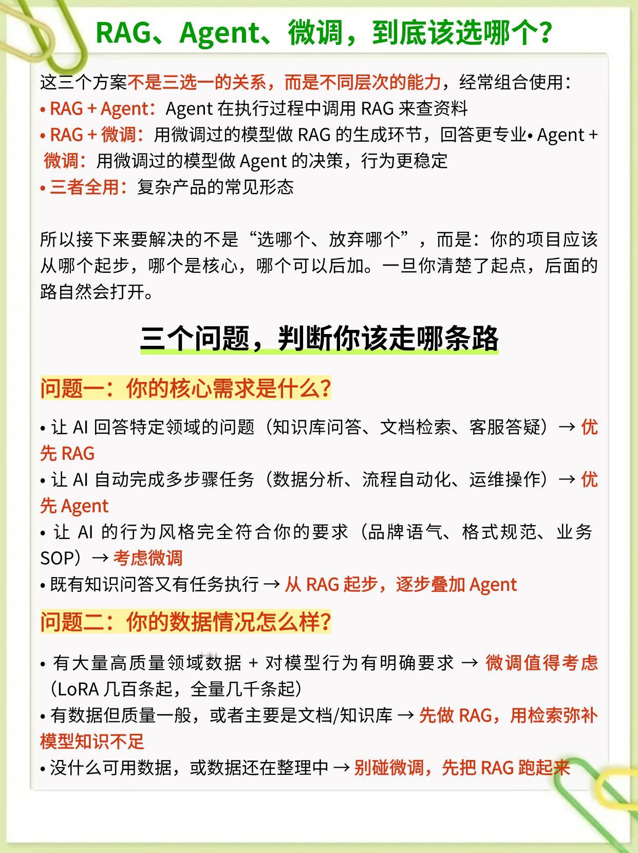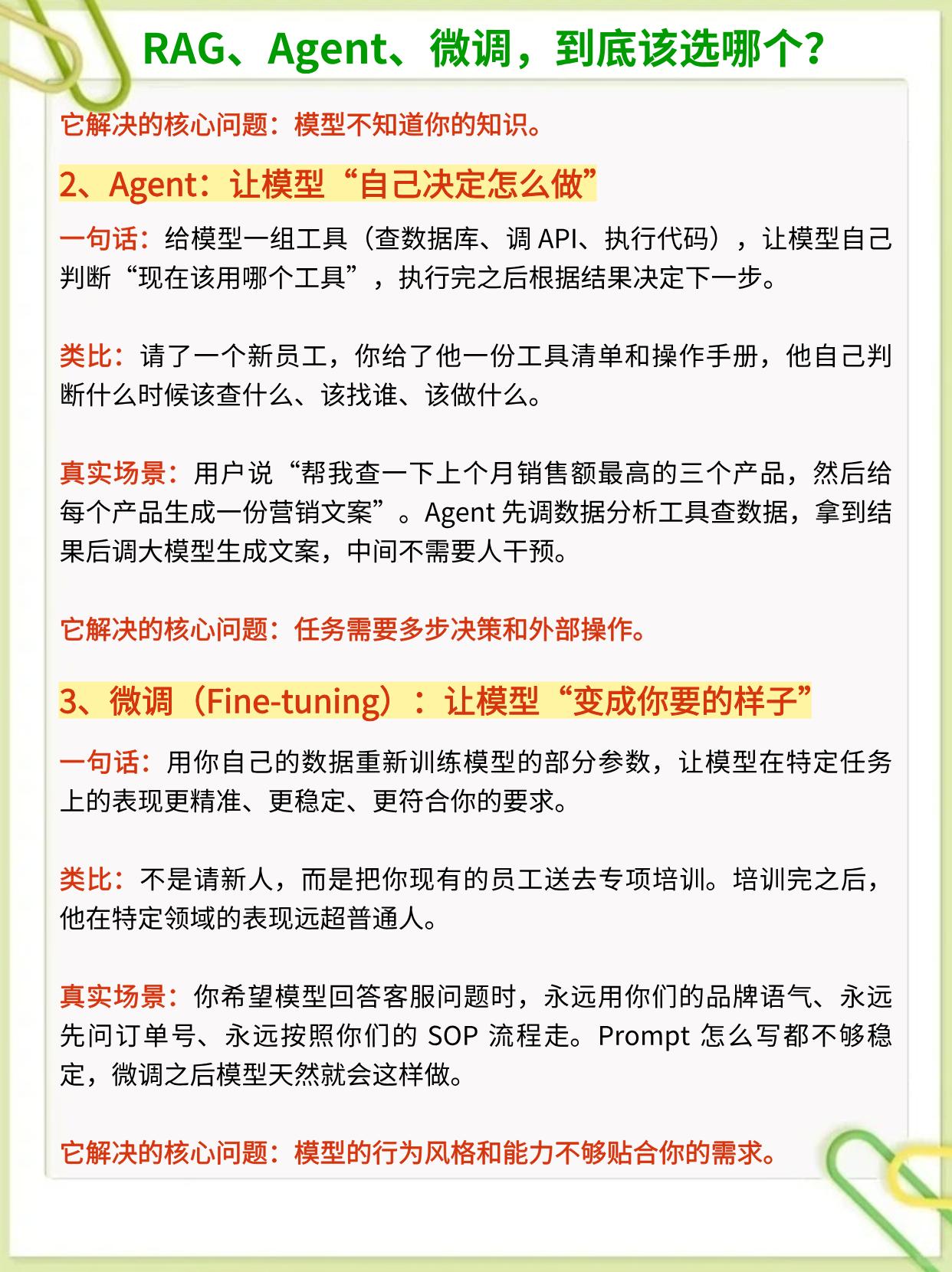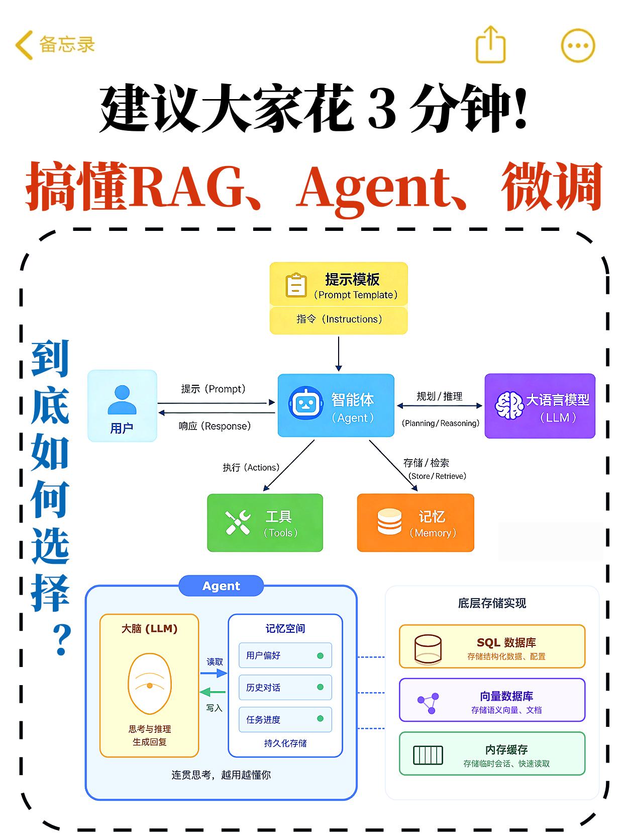 建议大家花3分钟搞懂RAG、Agent、微调!!!
