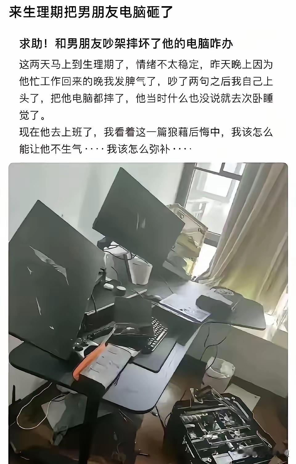 别把情绪失控,包装成女生特权 生理期从来不是肆意发疯的挡箭牌,经期不适,更不该变成伤害身边人的理由。 他在外奔波辛苦谋生,晚归已是身不由己; 你却借着激素波动,摔碎他赖以工作、养家糊口的全部底气。 一时上头毁掉的不只是一台电脑,是他辛苦打拼的心血,是两个人相处的安全感,更是最基本的相处底线。 成年人最基本的修养,从来都是: 身体可以不舒服,但脾气不能没边界;情绪可以有起伏,但做人不能没分寸。 再难控的心情,也不该对着爱你的人横冲直撞;再委屈的情绪,也不能用砸毁别人生活来宣泄。 事后的愧疚永远廉价,失控的伤害永远不可逆。 温柔从来不是天性,克制才是一个人最顶级的教养。 恋爱三观 两性清醒