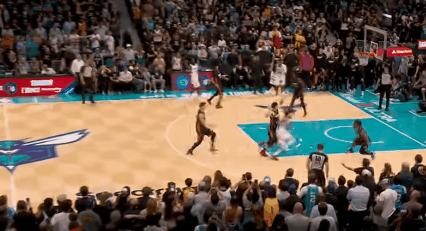 比赛开始,热就伤了83分先生阿德巴约——三球看你都干了啥?——但维金斯和小米切尔维持着分差。最后5分钟热还领先5分,然后黄蜂开始蜂癫。——三球后场一个浪击地甩给小桥,小桥一条龙突进,神经病似的14尺长跑投,打板蒙进,2+1。——三球一个高抛,小桥空接,102平。两个妖怪球,球迷疯了。