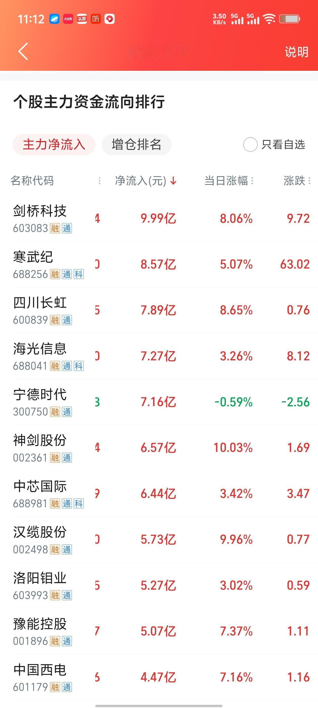 主力资金最新动向曝光!半导体、AI算力成最大赢家,宁德时代逆势吸金 家人们!最新主力资金流向榜单出炉,直接看懂大资金今天在买什么!🔥 剑桥科技以近10亿净流入断层第一,单日大涨8.06%,光模块赛道彻底被资金抢疯了!🥇 寒武纪紧随其后,净流入8.57亿,大涨5.07%,AI算力龙头继续被资金抱团! 更有意思的是,宁德时代逆势吸金7.16亿,股价虽然小幅下跌,但大资金疯狂抄底,新能源赛道的拐点要来了? 🔥 核心资金流向拆解 1. 半导体/AI算力:绝对主线,资金疯狂涌入 剑桥科技、寒武纪、海光信息、中芯国际,清一色的AI算力、半导体龙头,包揽榜单前几名! 说明大资金坚定看好AI算力、半导体的长期逻辑,主线行情根本没结束,只是在轮动上涨! 2. 四川长虹、汉缆股份:超跌反弹,资金抄底 四川长虹净流入7.89亿,大涨8.65%;汉缆股份净流入5.73亿,接近涨停! 超跌低价股被资金挖掘,说明市场情绪回暖,资金开始高低切换,布局低位补涨机会。 3. 宁德时代:逆势吸金,新能源拐点信号? 宁德时代股价跌了0.59%,但主力净流入7.16亿,大资金在下跌中疯狂抄底! 储能、新能源车赛道调整充分,资金提前布局,新能源的反弹行情要来了? 💡 普通人操作建议 - 主线AI算力、半导体:继续拿稳核心龙头,别轻易下车,资金抱团行情还在延续 - 超跌低价股:只适合短线博弈,别追高,快进快出 - 新能源:宁德时代被资金抄底,可以重点关注储能、新能源车的低吸机会 大资金的动向,就是市场的风向标!看懂主力买什么,你就跟上了市场的节奏! 主力资金 剑桥科技 寒武纪 宁德时代 AI算力 半导体 A股 ⚠️ 风险提示:本文仅为市场资金流向分享,不构成任何投资建议。市场有风险,投资需谨慎。