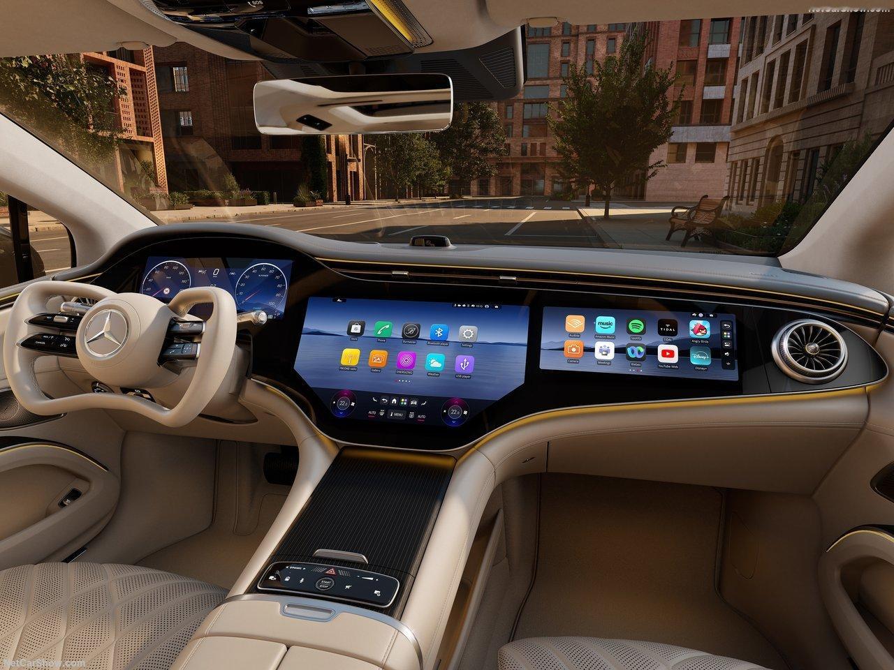 车内部分,新EQS使用S级同款加热安全带,后排除气囊安全带,还有两块搭配MBUX遥控器的13.1英寸头枕屏,以及710W的15扬声器柏林之声。除了Nappa真皮内饰,新EQS首次为环保人士提供无真皮选项,新的开孔杨木饰板和月桂叶缝线也极为精致。