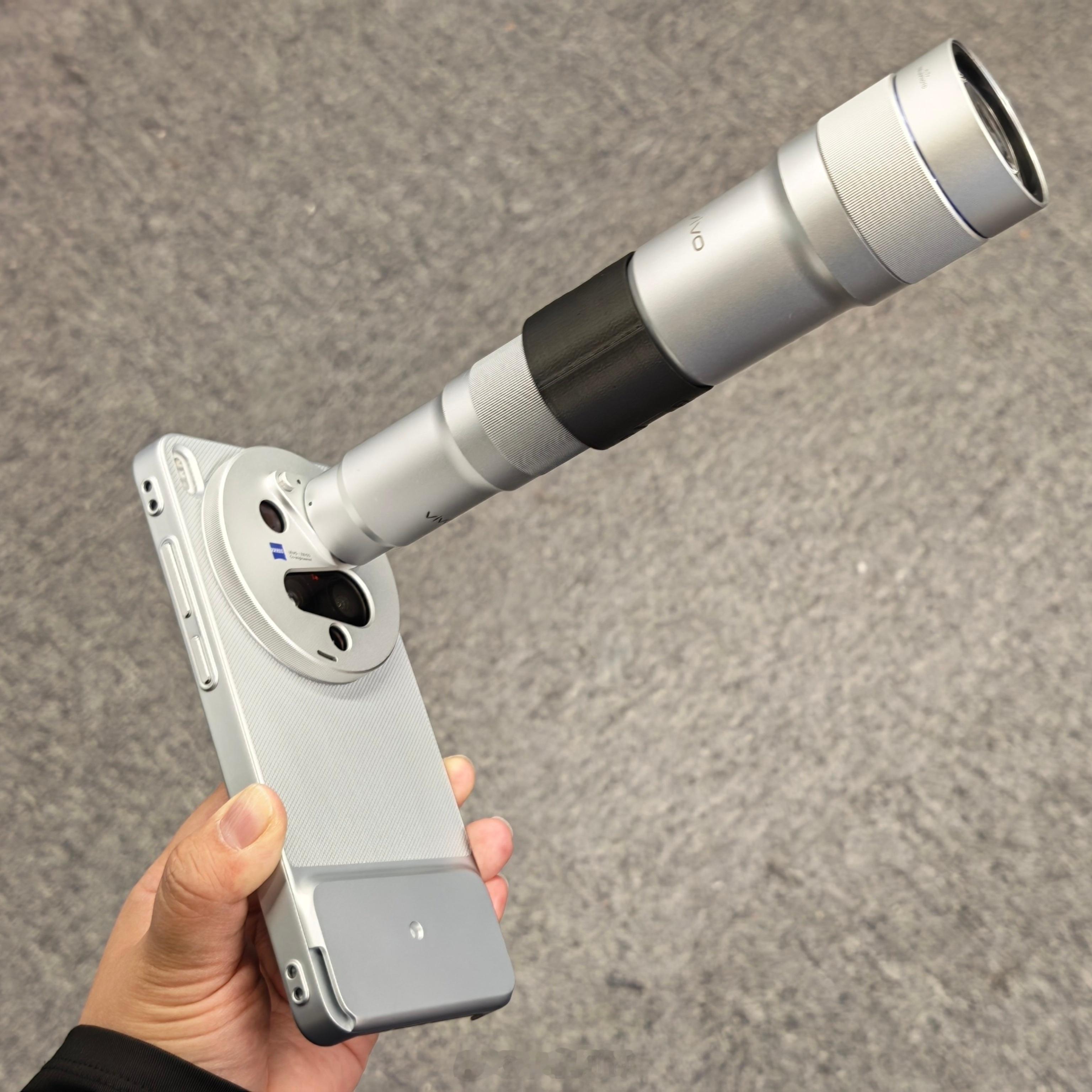 之前刷到有人3D打印转接环,把vivo两支增距镜镜头摞到一起,搞了个组装完看着很长,但实际拍摄画面倒置、效果也不太行,还是老老实实用适配好的单支镜头吧