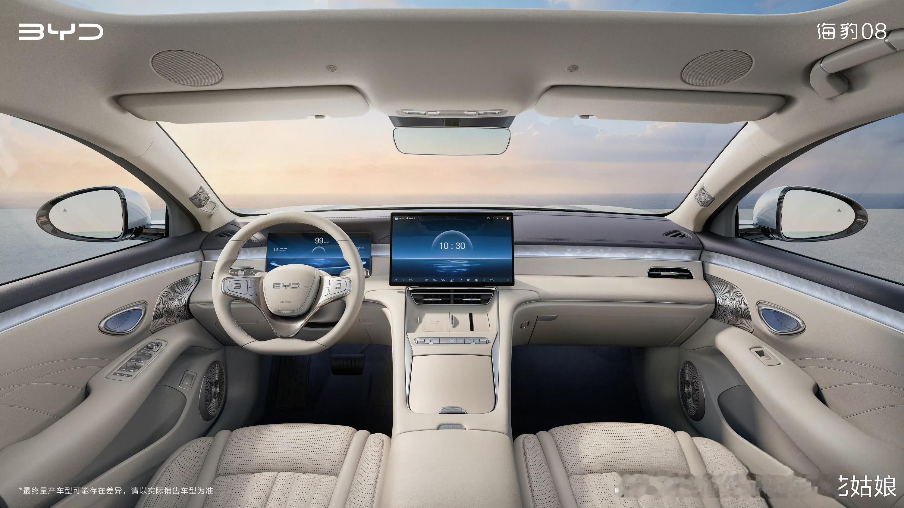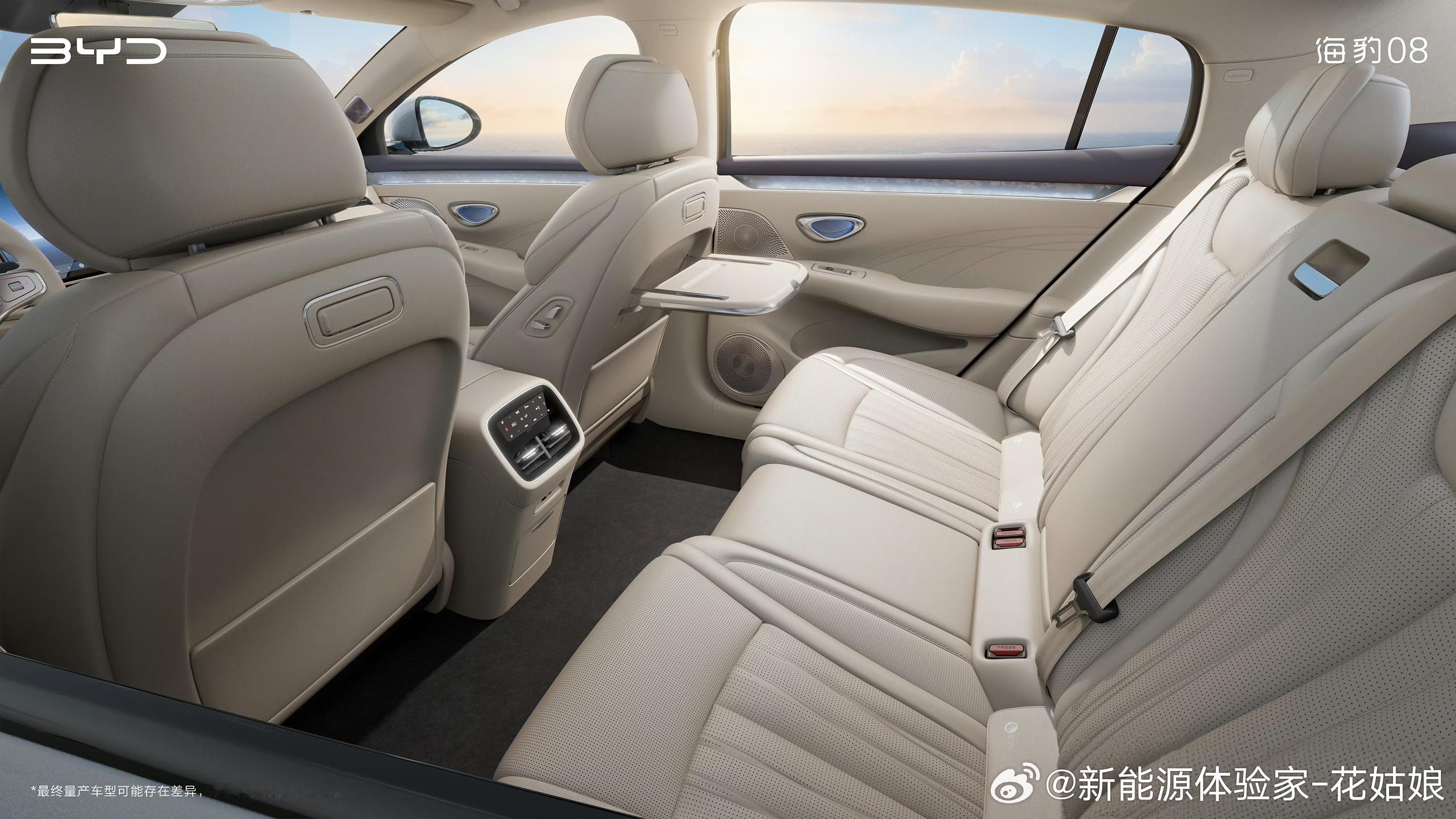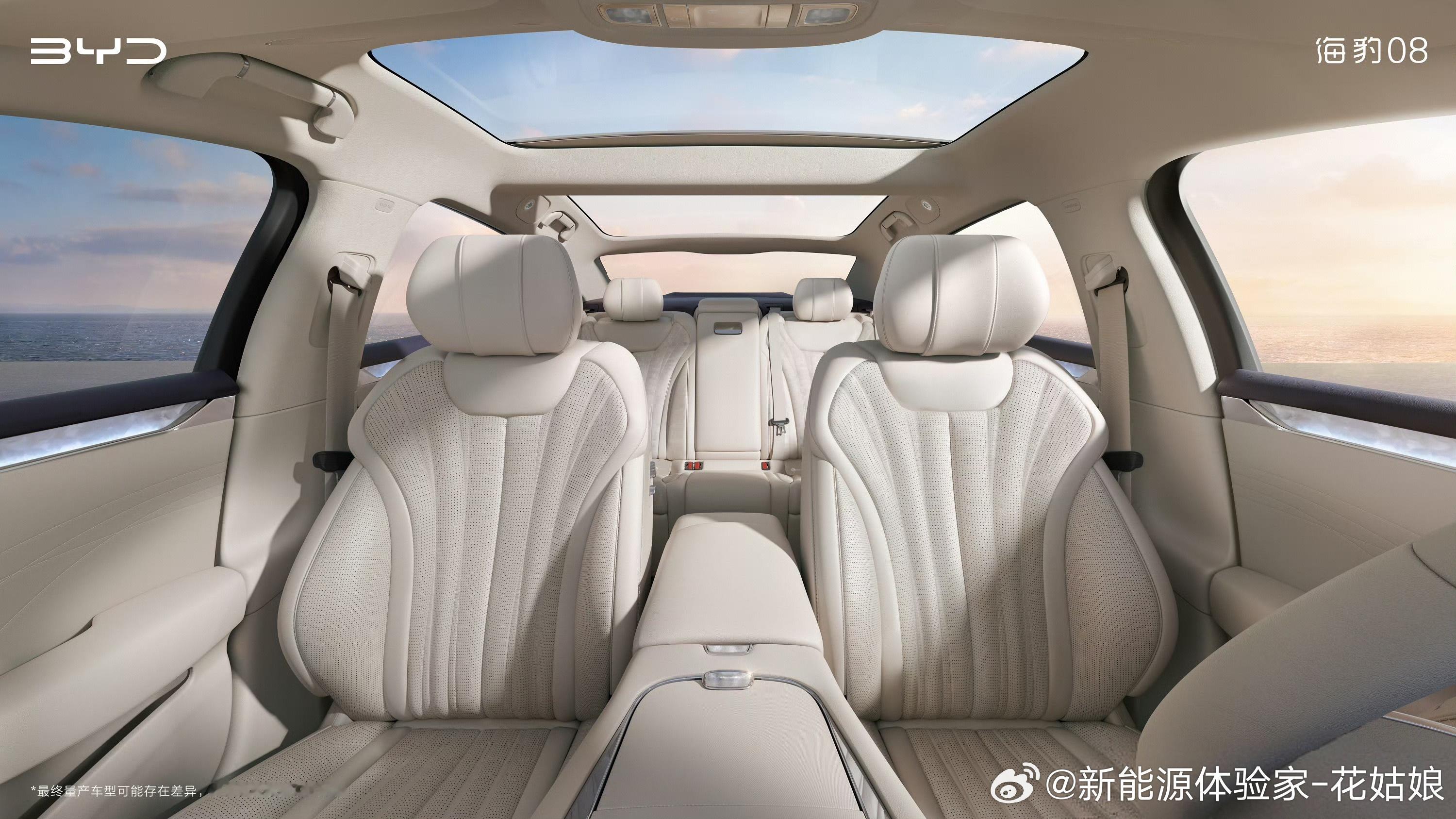 这内饰还是迪子嘛?海豹08内饰首秀:✅ 前排双零压座椅+后排航空级软包,翻毛皮+打孔皮的细腻感,摸过就回不去了✅ 后排小桌板+全景天窗,家用/商务/带娃场景全hold住,这不比传统轿车香?✅ 贯穿式氛围灯+双大屏,把“轻奢感”玩明白了,关键是价格还没定天花板!以前说“国产只堆配置不堆质感”的人,这次脸疼吗?评论区说句实话:这个内饰,你觉得能打几分?比亚迪大v聊车新能源大牛说