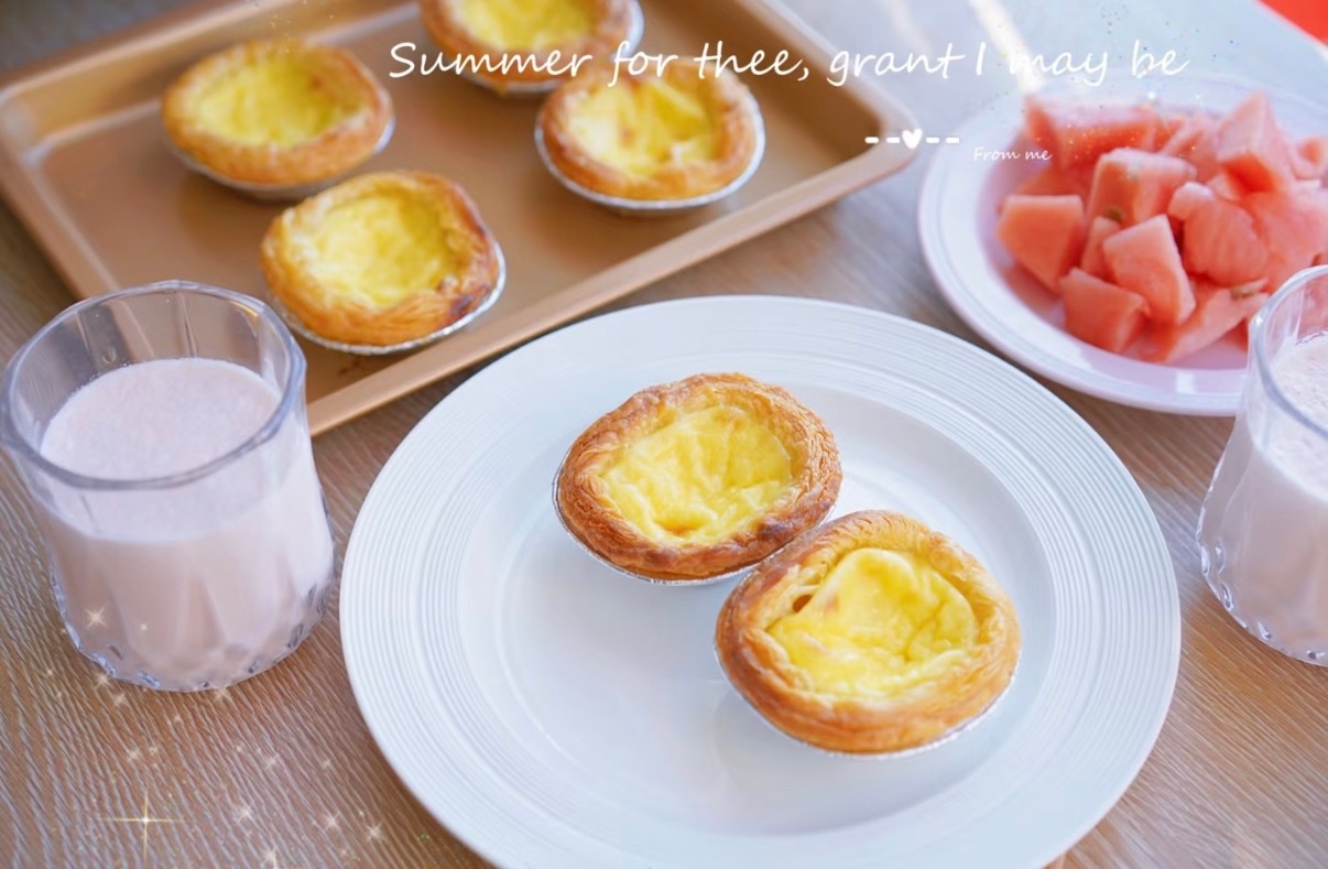 蛋挞其实很快手,孩子也喜欢吃。做早餐很好快还好吃,把蛋挞液放入挞皮中
