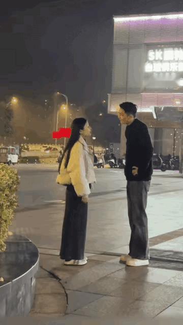 这对恋人的身高,也是差得太多了,俩人不知道因为什么事,吵的不可开交,好得男朋友会