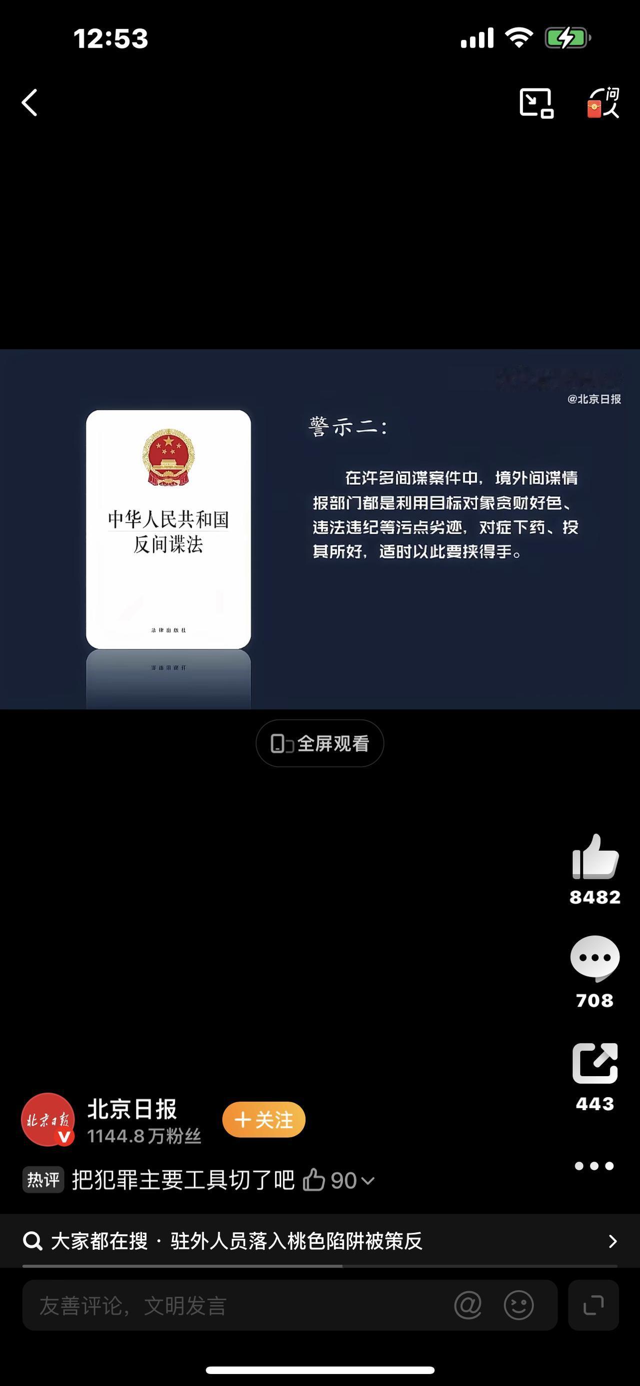 驻外人员嫖娼遭仙人跳 一步错毁一生!间谍陷阱如何把人拖下水? (视频画面:驻外场景空镜、国安通报文件、手铐特写、警示标语混剪) 驻外人员嫖娼被抓,竟牵出惊天间谍案! 不是简单治安事件,而是境外间谍精心布下的致命仙人跳。 从一时放纵到出卖国家秘密, 只怪他没看清:境外不是法外之地,每一步都可能成为间谍突破口! 真实陷阱:投其所好,步步设局 某驻外人员郭某某,被早已被策反的华人黎某盯上。 黎某摸清他贪色的弱点,精心设计一场"艳遇"。 深夜,他被带入"娱乐场所",刚陷入享乐,四名"当地警察"突然闯入控制现场。 此时,黎某叫来一位"神秘朋友"——正是境外间谍情报人员。 这场"仙人跳",从开头到结尾,全是间谍的剧本。 致命要挟:从把柄到叛国 "朋友"拿出嫖娼被抓的照片,直言:不想前途尽毁、身败名裂,就乖乖合作。 一个是法律与道德的把柄,一个是间谍的威逼利诱, 他彻底慌了,为掩盖丑事,答应提供国家秘密。 此后,他通过复印、摘抄、拷贝等方式,出卖大量涉密信息,甚至收取大额经费。 他以为能脱身,却不知早已掉进间谍的无底洞,一步步沦为叛国罪人。 双重恶果:个人毁了,国家受损 最终,他被国安机关抓获,因为境外间谍提供国家秘密罪被严惩。 一个人的放纵,让国家利益遭受难以估量的损失。 驻外人员本是国家形象的代表, 可自律失守,不仅毁了自己的人生,更给国家安全埋下隐患。 你以为这是孤例?大错特错! 境外间谍针对驻外人员的围猎,早已形成完整产业链。 他们精准拿捏人性弱点,投其所好、对症下药: • 利用贪色,布下"桃色陷阱""仙人跳" • 利用贪财,用金钱收买拉拢腐蚀 • 利用孤独,用虚假情感套取信任 更可怕的是,一步错,步步错。 很多人起初只是一时放纵,却没想到, 这成了间谍拿捏你的第一道把柄。 一旦被胁迫,要么身败名裂,要么背叛国家, 没有中间路可走,最终都是万劫不复。 驻外人员,肩负国家使命,身处异国他乡, 更应守牢底线、绷紧安全弦。 • 不碰法律红线,不越道德底线,拒绝一切反常邀约 • 时刻警惕"热心人""艳遇"等陷阱,不进入敏感场所 • 遇胁迫立即向组织报告,或拨打12339举报,主动报告可免于追责 色字头上一把刀,驻外人员的每一次放纵, 都可能成为间谍攻破国家安全的缺口。 别让一时糊涂,毁掉一生前程,更危害国家利益。 守护国家安全,就是守护我们每个人的安稳生活, 自律,是驻外人员最硬的底牌! 中国间谍法 反制间谍 防间谍技巧 境外间谍案 留学间谍 美国在华间谍 |