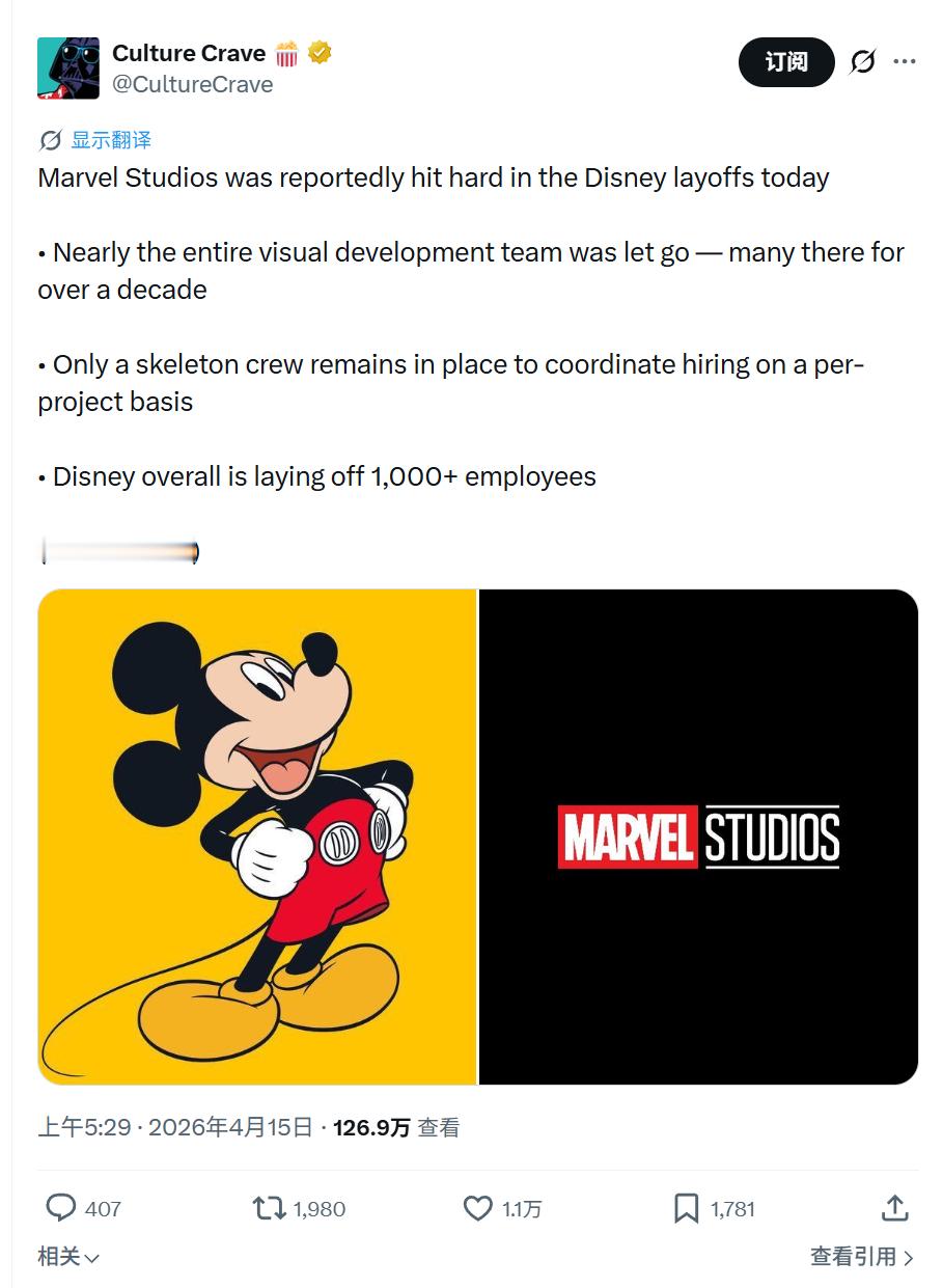 TNABO 根据《福布斯》的报道,在迪士尼新一轮裁员中,漫威视觉开发团队被基本全裁,不再让内部自己来把控电影跟剧集里头核心角色、服装、环境与道具的设计,而是转给外包来完成。