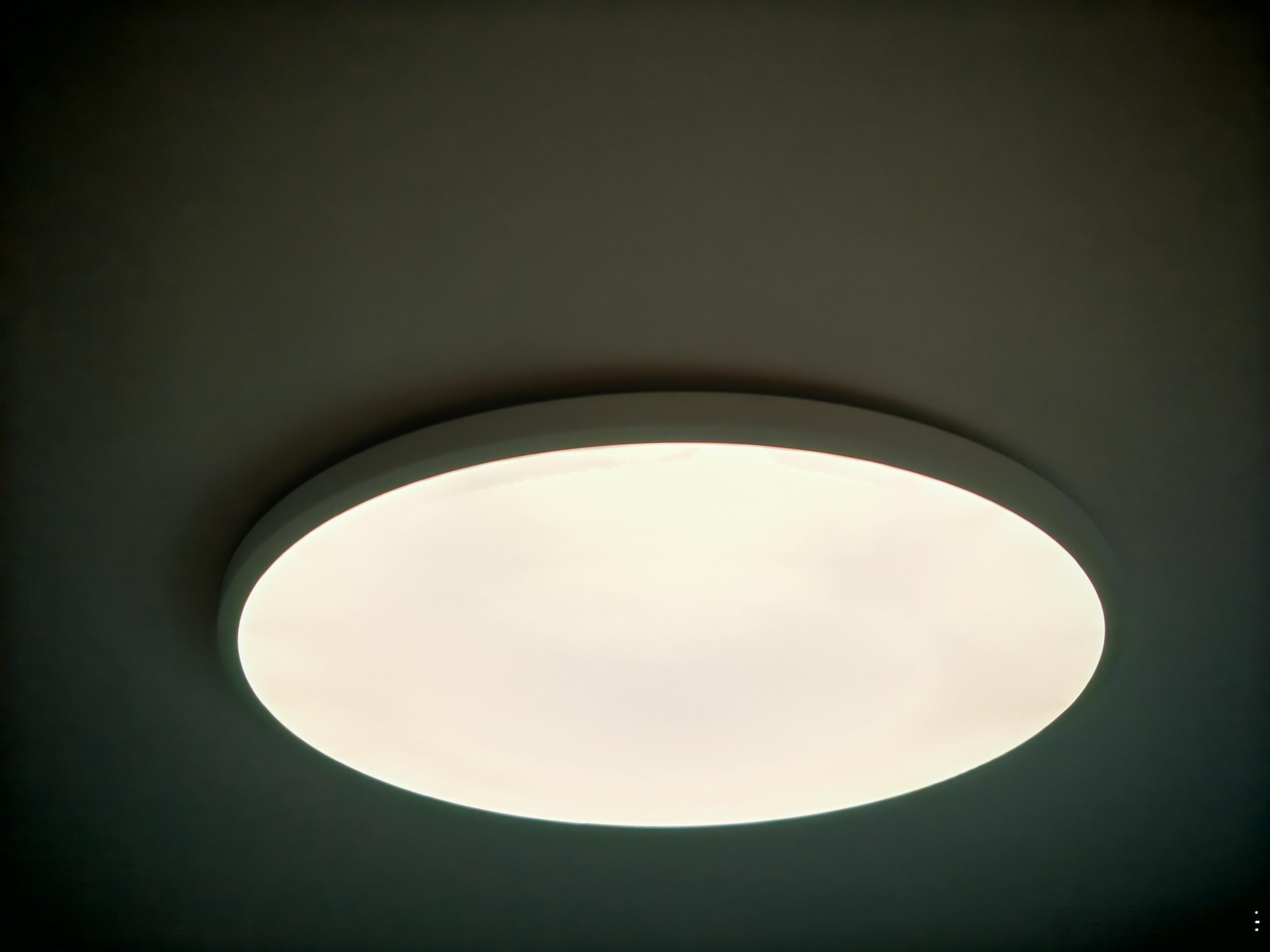 装在屋顶,效果不错,没有什么存在感,但色温和亮度都很舒服。米家漫反射吸顶灯科技家电新一代