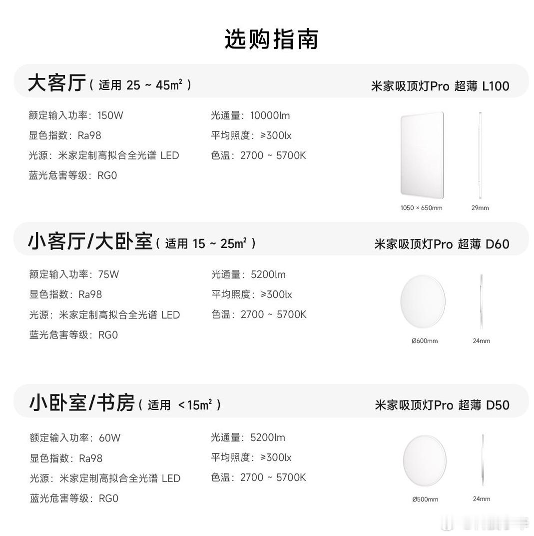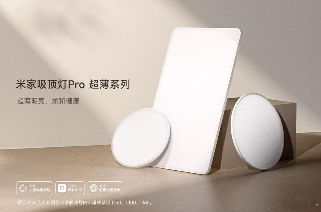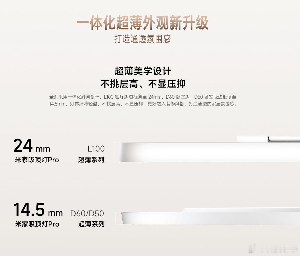 推荐:米家这个超薄的吸顶灯,真不错啊。打开的时候,我还以为少了配件,没想到真的就是这么薄。D60和D50 灯板的厚度都是14.5mm,也就是一厘米多。L100 稍微厚一点,也才24mm,真的超级薄。不仅薄,亮度也很足,我这个D50 是60W功率,15平米左右的卧室,完全没问题。
