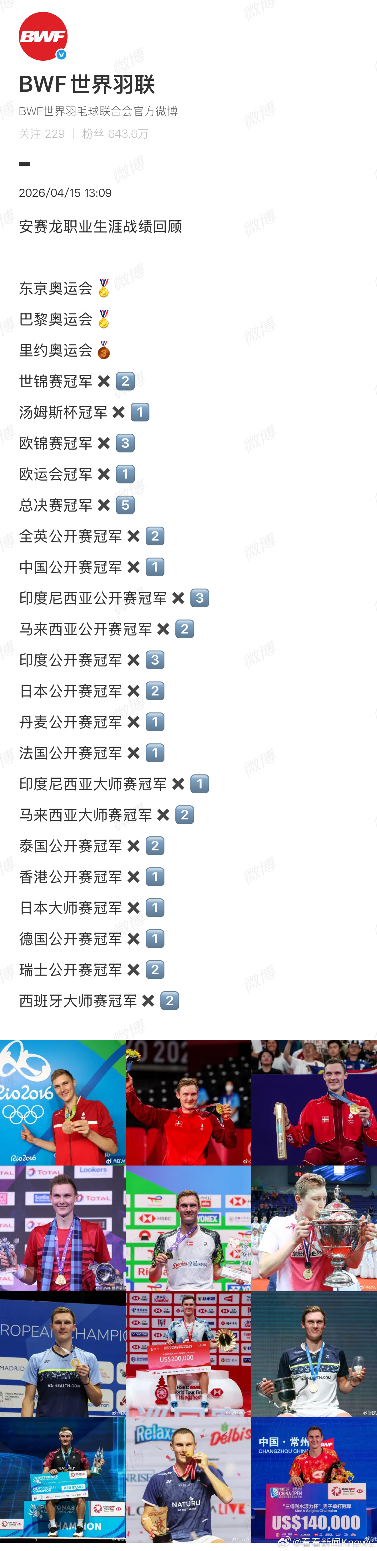 【#安赛龙职业生涯战绩#】4月15日,发文回顾安赛龙职业生涯战绩→#安赛龙宣布退役#
