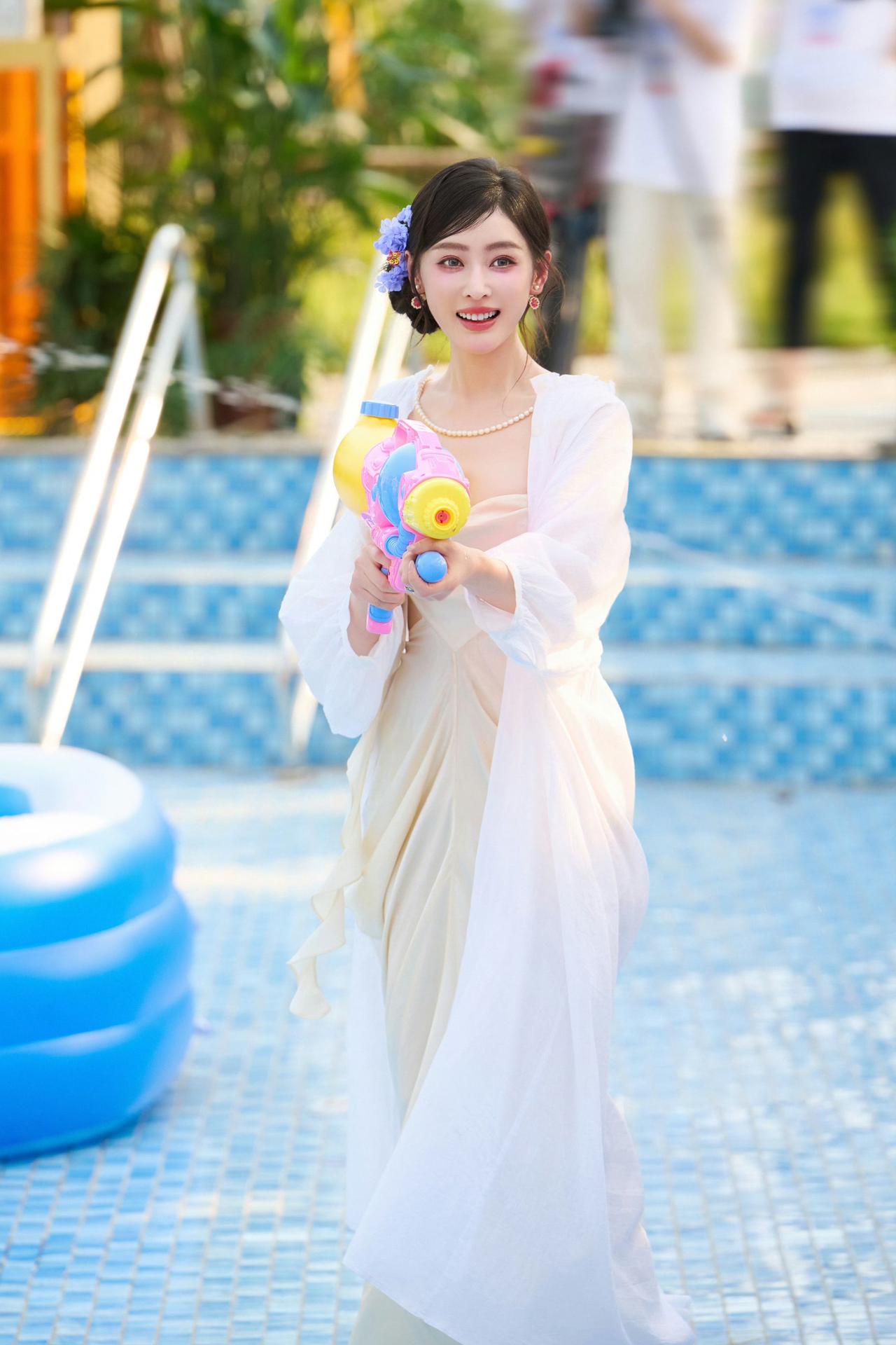 张天爱粉裙迷人穿搭:星河鹭起,浪漫生姿。张天爱