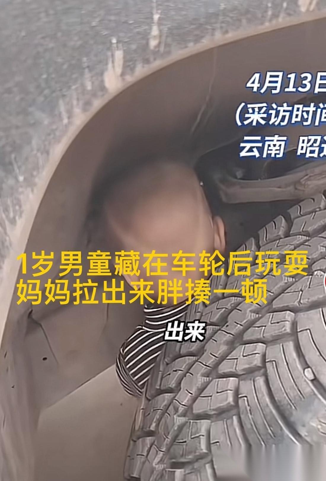 “看完让人捏把汗”!云南一男童藏到汽车车轮后面去玩,妈妈发现后一把把他拉出来,还狠狠胖揍了一顿。网友:打得好! 有些看客觉得这当娘的下手太黑。车不是停在那没动吗?把孩子拽出来训斥两句也就罢了。 这种和稀泥的同情心,荒唐透顶。 孩子这叫拿命作死。大人这时候要是心软,那就是残忍地把他往鬼门关推。 咱们来算笔安全账。 考过驾照的人肯定记得,不管是过去的桩考还是现在的科目三,明文规定上车启动前必须“绕车一周”。为什么要死磕这条铁律?因为四轮车周围的盲区太可怕了。 尤其是现在满大街跑的高底盘SUV。 一米以下的物体一旦缩进右前轮或后轮毂旁边,驾驶座上的人就算把脖子伸长也是两眼一抹黑。只要司机稍带一脚油门,这看似调皮的捉迷藏,当场就会变成骨肉碎裂的人间惨剧。 这位母亲抡起的巴掌,硬生生是从死神手里抢人。 小孩子天生就不懂得害怕,你温声细语地跟他讲道理,风一吹就散了。与其以后看着他抱憾终身,不如现在让他结结实实挨顿皮肉之苦。在极度惊恐的情绪底下,这顿狠揍就是最对的决定。 生死红线面前,所有的“快乐教育”全得往后稍一稍。 家长该下狠手的时候,千万别装文明。必须用最猛烈的痛感,把规矩死死刻进小孩的骨子里。宁愿今天让他哭天抢地长记性,也绝对不给明天留哪怕一丝躺进急救室的侥幸。 安全这门课,没有及格线,只有零分和满分,底线失守往往就在一瞬之间。 对此,你怎么看?
