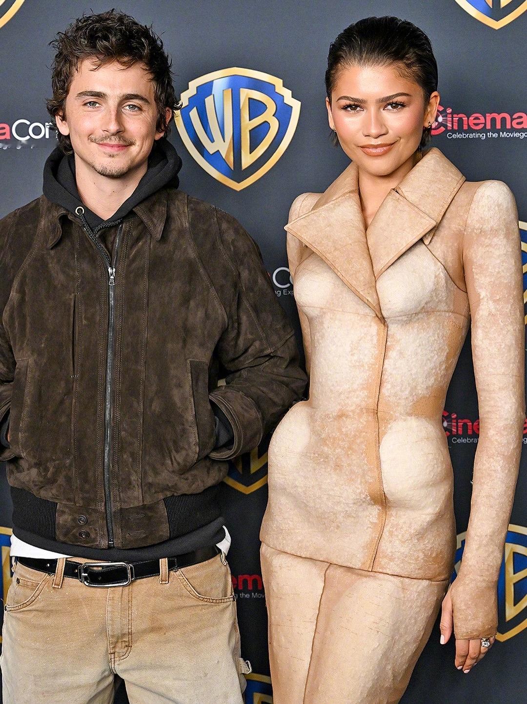 现身 2026 年拉斯维加斯 CinemaCon ,宣传《沙丘:第三部》的赞达亚、甜茶Timothée Chalamet、Jason Momoa 以及导演 Denis Villeneuve 。赞达亚身穿Schiaparelli 2026秋冬系列,很贴合电影主题的一身造型!米拉服饰解析