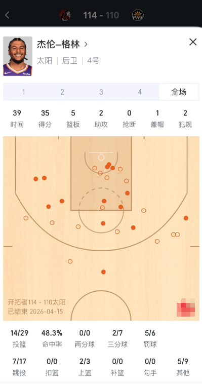 格林35+ 今天太阳VS开拓者的附加赛比赛虽败犹荣!真心尽力了!