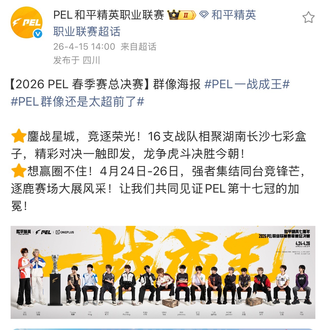 2026PEL春决晋级名单十六强集结,长沙见!常规赛6强+季后赛10强全部出炉