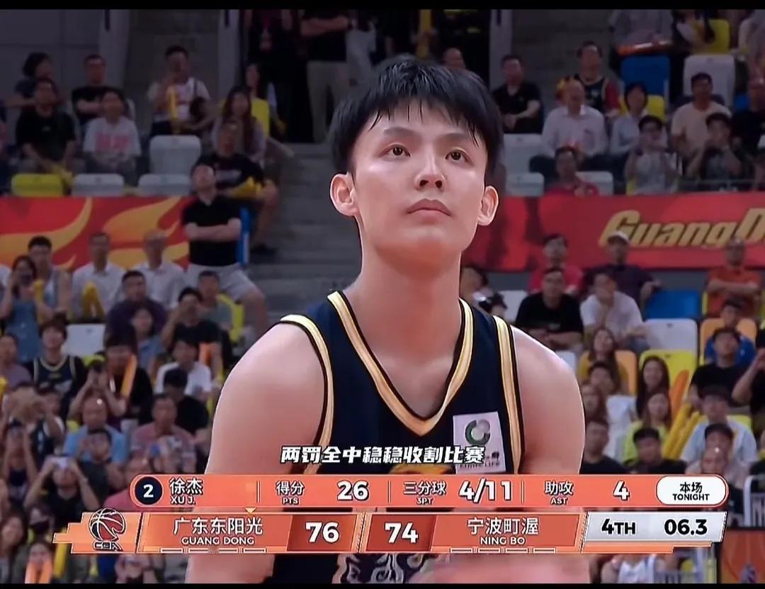 一般很少有比赛能让我紧张激动的,昨晚广东打宁波就体验了这一把。 首先赛季来到收尾阶段,每场比赛都至关重要。宁波队是本赛季黑马,上次也击败过广东队,创造队史首胜广东,正所谓气势如虹。 再者这场比赛广东队缺了萨林杰,萨姆纳,胡明轩乃至焦泊乔这些主力,杜锋也突然生病,拉多维奇首次执教,难度可想而知。 另外广东队内线是本赛季最大短板,面对有着联盟最高的法尔,怎样应对?以前大比分输上海北京,就是吃了内线不足的亏。 比赛初段形势不利,宁波队打出了特点,利用自己优势一度领先15分,广东队靠着徐杰,奎因苦苦支撑,看着就是紧张。 到了下半场,紧张之余还是觉得有希望的,因为拉多维奇知道怎样让徐杰打,球迷也相信徐杰能扛起球队前进。 看到徐杰远投突破,助攻队友,冲抢篮板,无所不能的存在,带领球队扳平反超,激动之情溢于言表,特别是罚球时现在球迷山呼海啸高喊MVP,场面让人热泪盈眶。 徐杰太棒了,词语都难以形容,太棒了。 正是: 宁波势凶扑面来, 先声夺人占舞台, 人丛飞出徐中锋, 击败对手展英才。