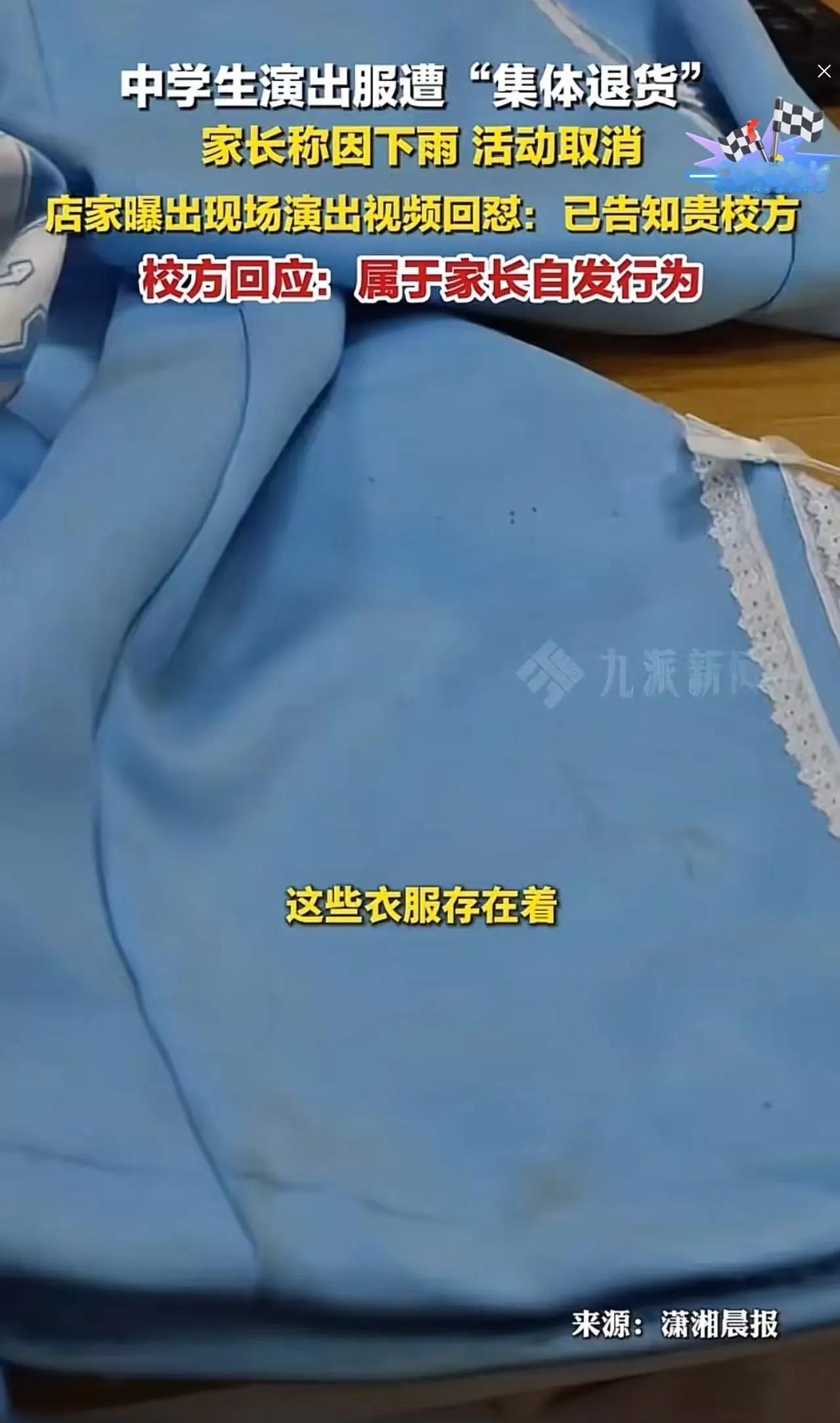 核心事实:陕西商洛丹凤县初级中学八年级20名家长为4月8-9日校园文化艺术节自行购买演出服,活动后集中申请退货(多卡在“七天无理由”期限),商家曝光视频并质疑“薅羊毛” 。教体局已介入,家长取消退货并全额付款,事件已解决 。 各方说法 - 商家:退货理由与视频矛盾(如“活动取消”“起球”),衣服有使用痕迹,影响二次销售。 - 校方:采购为家长自发行为,学校未统一组织。 - 教体局:已劝导家长讲诚信,推动全额付款并获商家谅解 。 争议焦点 - 诚信边界:活动后以使用痕迹为由退货,涉嫌钻平台规则空子。 - 权责划分:家长自发采购,学校是否应协助协调育人。 - 育人成本:学校办活动不愿出资,将负担转嫁给家长,引发网友吐槽。 一句话总结:家长“白嫖”式退货伤了商家信誉,校方一句“自发”难辞其责,诚信与育人才是关键。 素材取于网络侵权删除