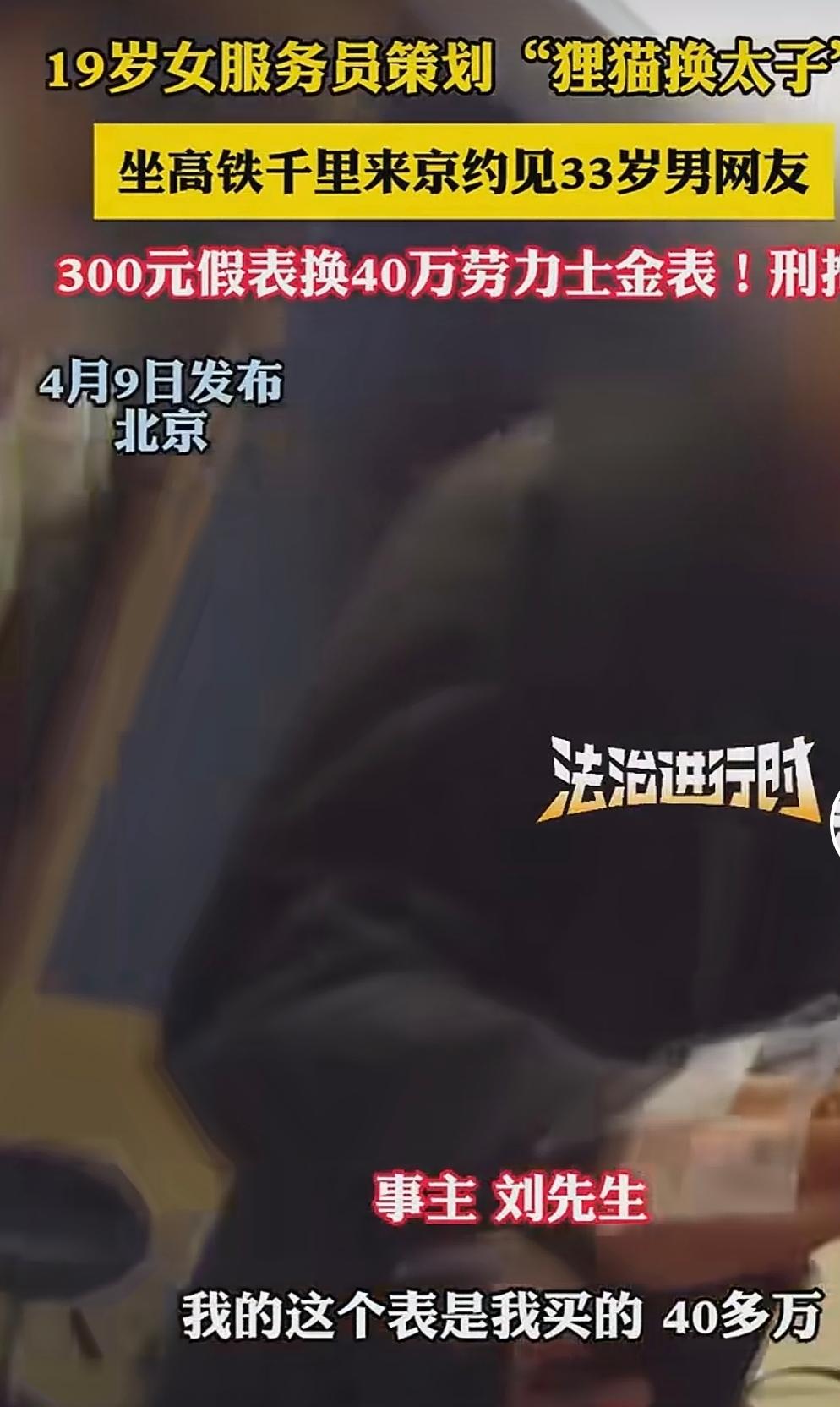 北京,19岁的女服务员,在网上认识了一男子,男子在女服务员面前炫耀了自己有40多万劳力士金表的事实,也引发了女服务员的贪欲,她在网上买了300元的假表,不惜一千公里的路程,来到北京见33岁的男子,顺便在对方不注意的时候,用300元的假表换成了男子40多万的真表,男子发现后,女服务员还百般抵赖,男子只能报警,在警局,女服务员哑口无言。网友纷纷说:一个贪钱,一个贪色。 一家小餐馆里,19岁的女服务员每天端茶倒水,看惯了形形色色的客人,日子过得平淡又拮据。 直到某天在网上刷到个一个男子的动态,对方晒出的生活让她心里起了波澜——名牌包、高端餐厅,最扎眼的是手腕上那块闪着光的劳力士金表,配文里明晃晃说这表值四十多万。 女服务员盯着屏幕,心里的天平渐渐歪了。 四十多万啊,那是她不吃不喝攒十几年都未必能挣到的数。 一个疯狂的念头在她脑子里转了几圈,竟慢慢清晰起来。 她咬咬牙,在网上花三百块买了块仿得有模有样的假劳力士,又凑了路费,坐着绿皮车晃了一千多公里,特意从老家赶到北京。 见到男子时,女服务员压着心里的紧张,装出一副热情又单纯的样子。 她故意找话题聊表,趁男子低头看手机、没留意的间隙,飞快地把自己包里的假表和对方手腕上的真表换了过来。 冰凉的金属触碰到皮肤的瞬间,她的心狂跳不止,却强装镇定地继续说笑,没一会儿就借口有事匆匆离开。 原以为能神不知鬼不觉地把四十多万揣进兜里,可没两天,男子就发现了不对劲。 好好的金表怎么变得轻飘飘的,表盘的刻度也透着廉价感,他拿着表去鉴定,果然是块假货。 联系女服务员对峙,对方却一口咬定没碰过他的表,一会儿说可能是他自己弄混了,一会儿又指责他故意栽赃,百般抵赖。 男子被气得够呛,直接报了警。 当民警把证据摆在女服务员面前时,她脸上的慌乱再也藏不住,先前的狡辩瞬间崩塌,低着头哑口无言。 网友们知道这事儿后,都忍不住议论:一个为了钱铤而走险,一个恐怕是冲着小姑娘的年轻劲儿来的,俩人心里那点小九九,全被贪念给牵着走,最后落得这么个下场,谁也不冤。 其实想想,这事儿说穿了就是人心不足蛇吞象。 女服务员要是踏实干活,攒钱也能过上好日子,偏要走歪路。 男子要是不刻意炫耀,也不会引火烧身。 可他们都被心里的贪念蒙了眼,最后一个面临法律的惩罚,一个丢了钱财又闹心,说到底,都是自作自受。 这事儿说起来,两边都没占到便宜,全是贪念闹的。 先说那姑娘,年纪轻轻不好好踏实干活,眼瞅着别人的好日子就红了眼,动了歪心思,以为换块假表就能凭空赚几十万,这不是异想天开吗? 四十多万的东西,人家能不宝贝?哪有那么容易让你糊弄过去。 再说那男的,好好的日子过着,非要晒名牌、晒名表,这不就是故意显摆吗? 说白了就是想靠这些东西撑场面,结果引来了惦记,偷鸡不成蚀把米。 其实生活里这种事儿真不少见,有人见不得别人好,总想着走捷径捞快钱。 有人爱面子爱显摆,巴不得全世界都知道自己有钱。 可捷径哪是那么好走的?走歪路早晚要栽跟头;显摆也得有个度,太招摇容易惹麻烦。 这俩人一个贪财,一个贪虚荣,最后一个蹲局子,一个破财闹心,全是自己作的。 做人啊,还是得脚踏实地,别总盯着不属于自己的东西,也别拿身外之物当门面,老老实实过日子才是真的。 《刑法》第264条规定,盗窃公私财物,数额特别巨大或者有其他特别严重情节的,处十年以上有期徒刑或者无期徒刑,并处罚金或者没收财产。 本次案件中,女服务员以非法占有为目的,秘密调换他人价值四十余万元的手表,属于盗窃数额特别巨大的情形,已构成盗窃罪。 她的行为不仅违背了道德准则,更触碰了法律红线,必将为自己的贪念付出沉重的法律代价。