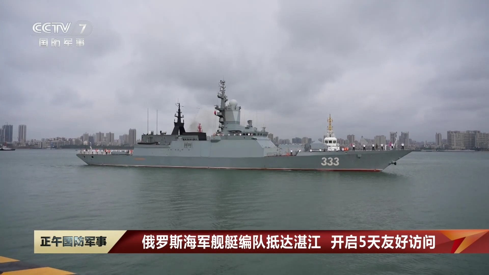 今天(15日)上午,由俄罗斯海军太平洋舰队“完美”号、“凛冽”号护卫舰和“佩琴加”号中型油船组成的舰艇编队抵达广东湛江,开始为期5天的友好访问。