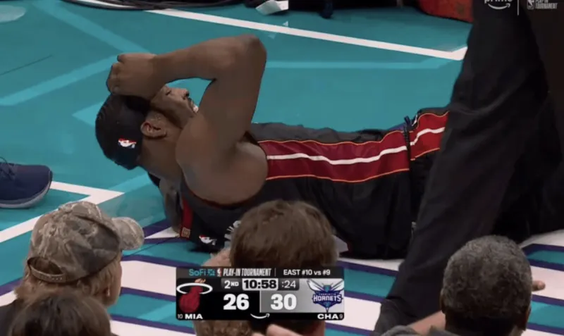 在第二节比赛中,阿德巴约在一次防守回合时被鲍尔用手拌倒,阿德巴约因下背部伤势缺席本场比赛剩余时间。