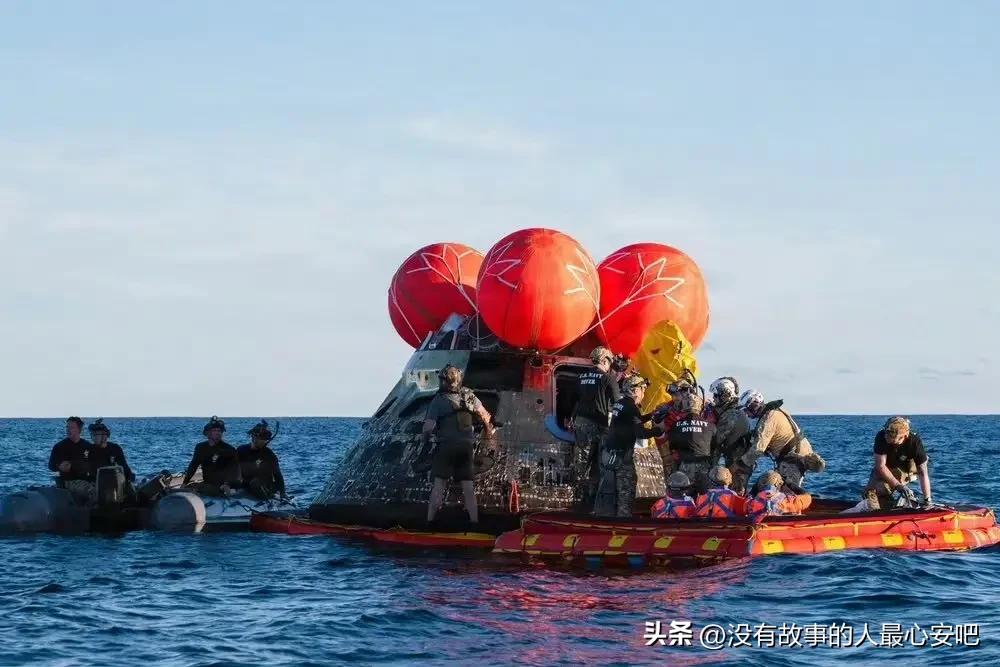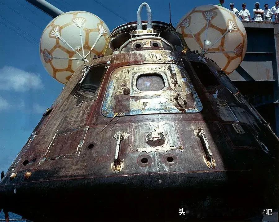 前两张图是阿波罗17号指令舱返回的画面,第三张是昨天返回舱的图,第四张是我们返回舱的图。 阿波罗17号返回距今已经54年了,指令舱的保护层材料肉眼可见的好了,不得不怀疑是不是他们把UFO的材料拿去研究了。