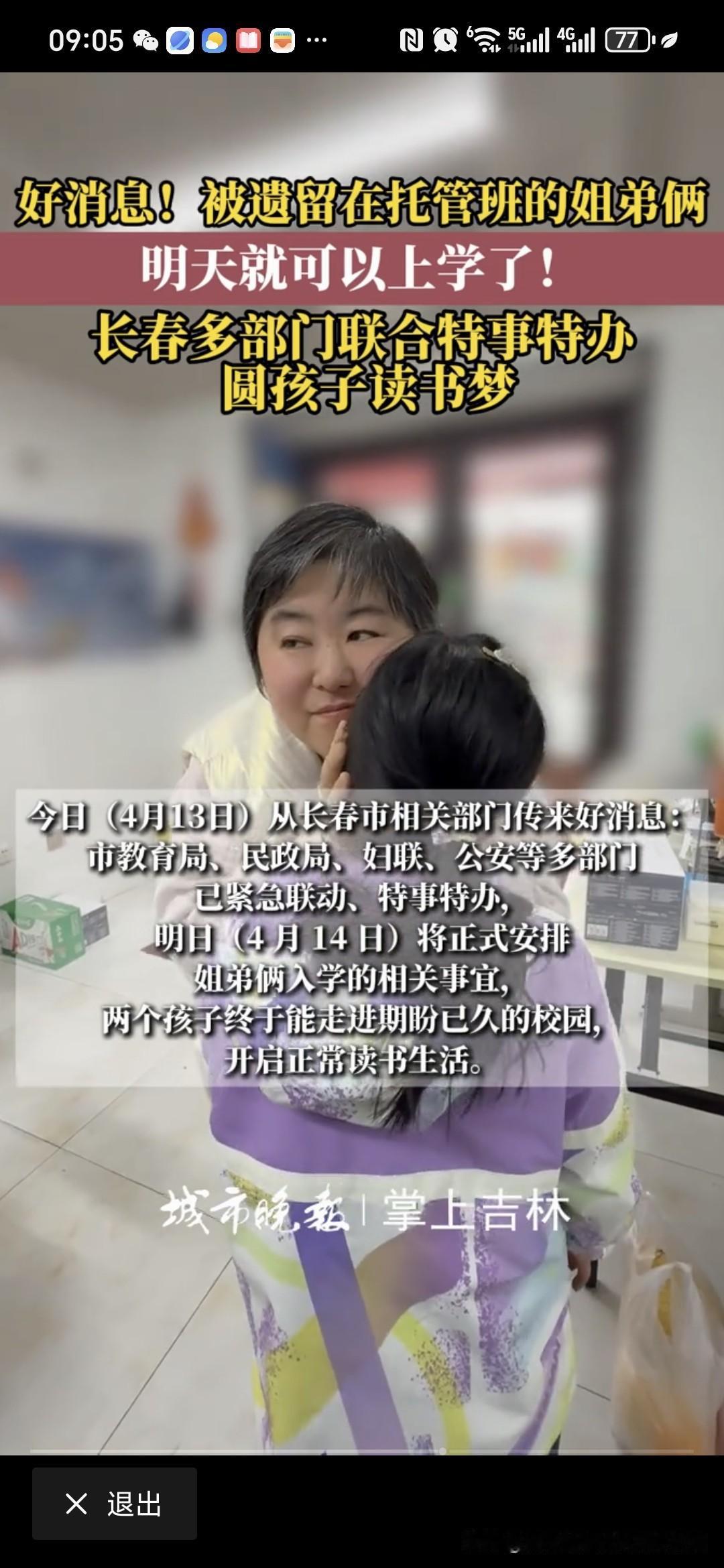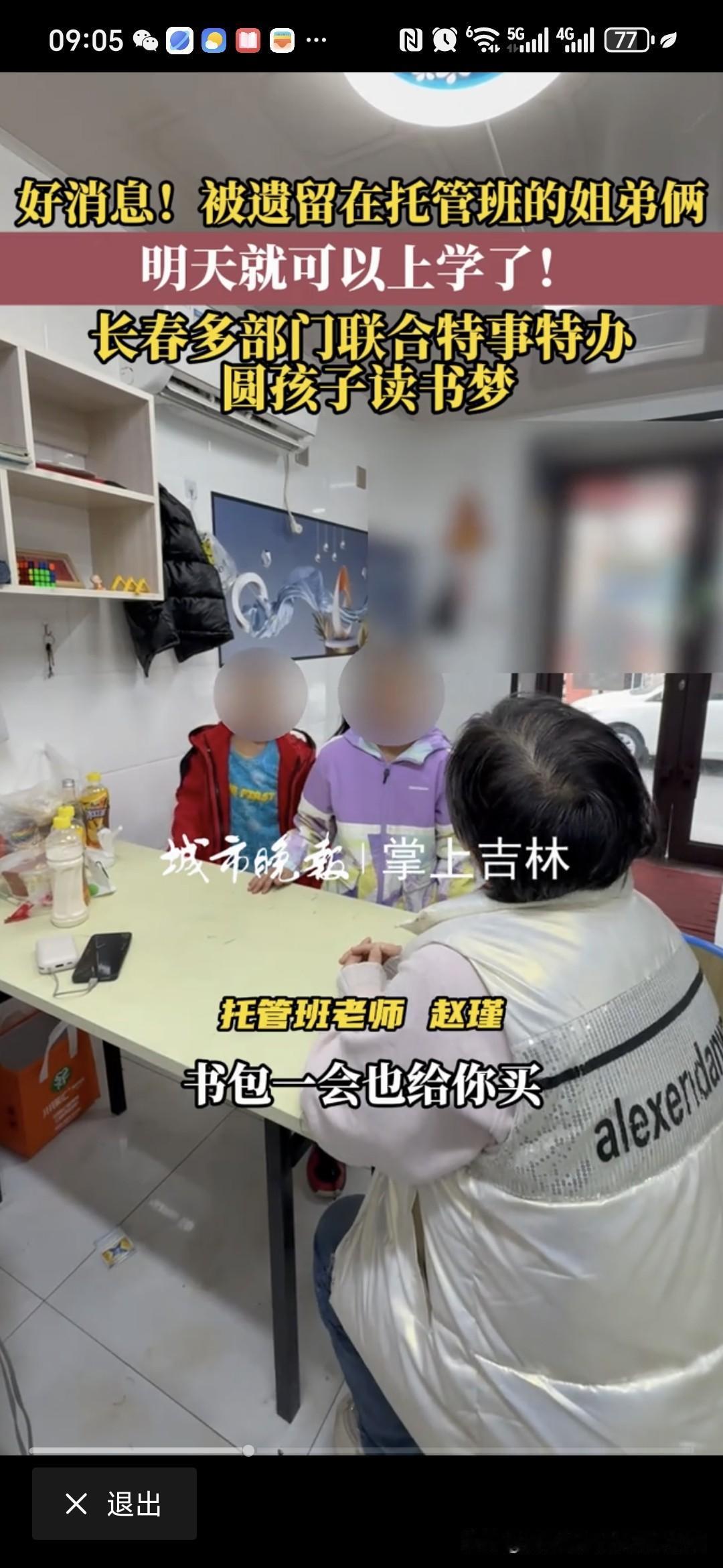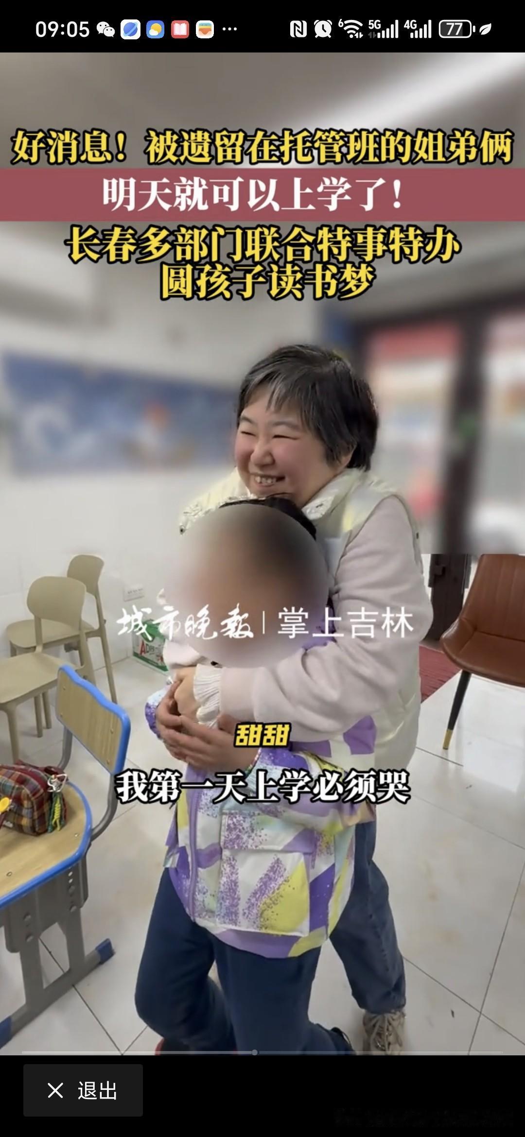 后续来了,被遗弃在托管班两年的孩子,今天就能上学了,其实最该感谢的不是当地教育部门,而是该感谢托管老师赵瑾。 要不是因为她的善良和爱心,不会照顾孩子那么长时间,让孩子喊自己妈妈,纠正孩子偷东西的坏毛病,这是把孩子当成自己的来看待。 本来孩子就是九年义务教育,孩子要不是网上舆论压力,教育部门应该也看不到,更不会特事特办。