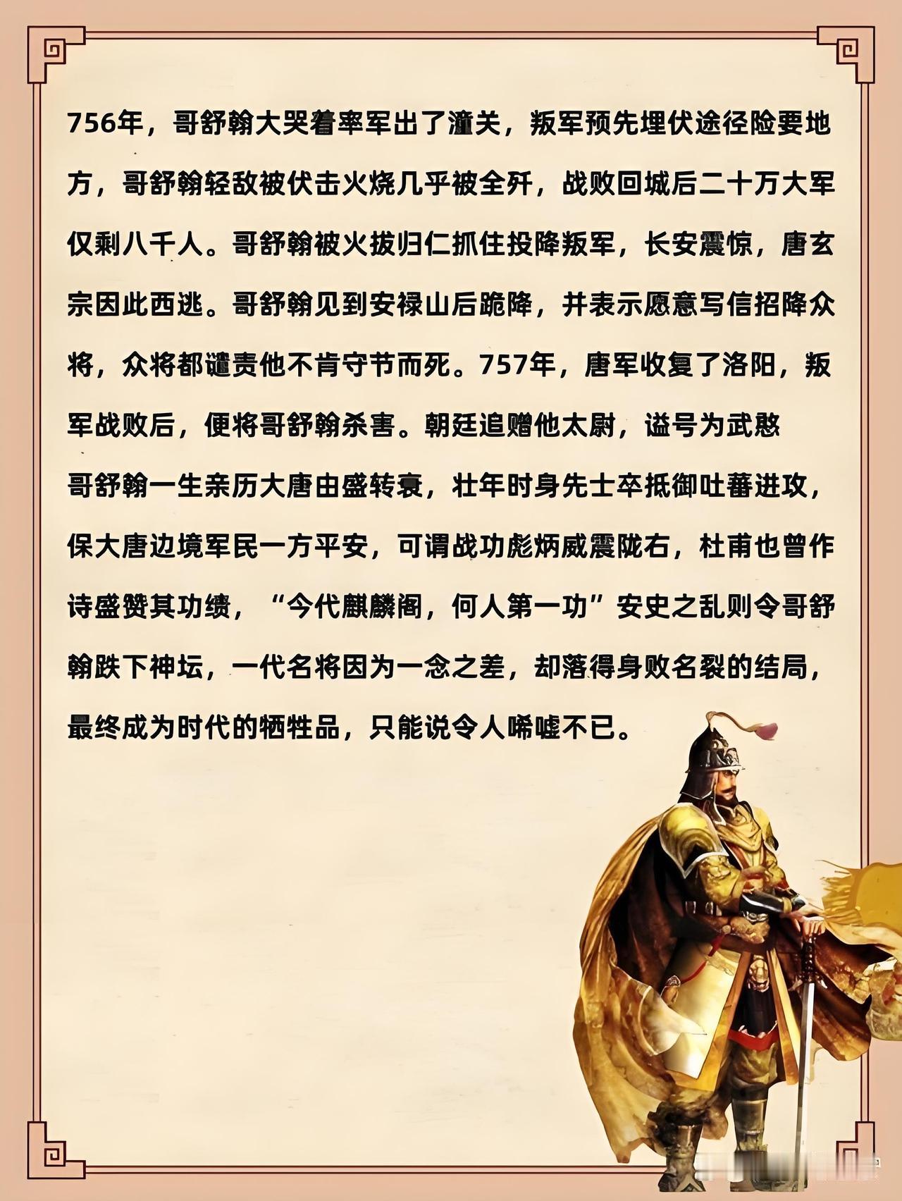 哥舒翰潼关战和:名将泪洒,盛唐防线咋崩的? 安禄山叛乱爆发之际,潼关成为唐朝抵御叛军南侵的关键防线。作为边关重镇,潼关的战略地位至关重要。著名将领哥舒翰主张“凭险固守”,强调利用地形优势稳扎阵地,以待时机反击,避免正面硬拼带来的巨大损失。然而,时任皇帝唐玄宗及权相杨国忠却倾向于激进出击,坚决要求主动迎战叛军,试图以速战速决的方式遏制叛乱蔓延。 面对皇命,哥舒翰不得不带兵出战,却因战前心理压力巨大而痛哭流涕,预感此次出兵凶多吉少。果然,唐军在潼关遭遇惨败,叛军趁势攻入关隘,潼关失陷,直接导致盛唐北方防线的崩溃。此役不仅是军事上的失败,更暴露出朝廷内部稳健派与激进派在战略选择上的尖锐分歧。 哥舒翰与唐玄宗、杨国忠之间的战略对峙,反映了盛唐末年权力与军事实力的复杂博弈。稳健派强调守势防御、以逸待劳,激进派则追求主动出击、速战速决,两种思路的撕裂最终削弱了唐朝的抵抗能力。潼关失陷成为盛唐由盛转衰的标志性事件,也为后续安史之乱的进一步恶化埋下伏笔。这场战与和的战略对峙,深刻揭示了政治决策与军事行动间的矛盾与挑战。渭南潼关古城 大唐功臣 历史 历史冷知识 历史故事 历史人物