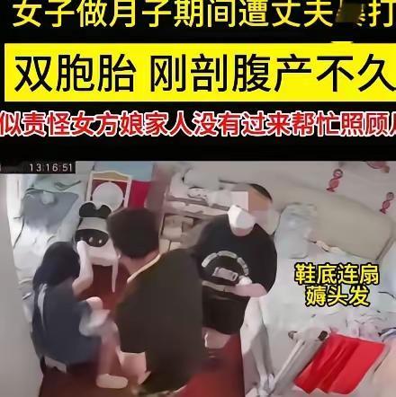太扎心了!江苏无锡一女子剖腹产生下双胞胎坐月子,因为娘家人没去照顾自己,所以被丈夫无情的殴打。吵闹的过程中,男子抬手就是几个巴掌,甚至拽扯着她的头发,这个宝妈毫无还手之力,太让人心疼了。 这段监控画面被曝光后,我盯着屏幕里那个蜷缩在床角、浑身是伤的女人,胸口堵得发慌。她刚从剖腹产的刀口疼痛里缓过来,怀里还抱着两个嗷嗷待哺的婴儿,连抬手擦眼泪的力气都该留给孩子,却偏偏要承受这样的暴力。没人能想象,在本该被捧在手心的坐月子日子里,她要面对的不是家人的呵护,而是丈夫的拳脚相加。 先说说这个家庭的基本情况,这也是我从知情人那里打听来的真实细节。宝妈姓林,今年28岁,和丈夫结婚三年,去年年底查出怀了双胞胎。整个孕期她都小心翼翼,孕吐严重到瘦了十斤,后期肚子大得连翻身都需要人扶,丈夫当时嘴上说着会好好照顾,可真正到了生产那天,却只留下一句“我要上班挣钱”,把她丢给了公婆。 剖腹产手术做了两个多小时,林女士被推出手术室时,身边只有公婆守着。双胞胎早产,一个体重五斤二两,一个四斤八两,都要放进保温箱观察,林女士看着监护仪里的小生命,刀口的疼都能忍,可心里的慌却没人能安抚。她给娘家妈妈打电话,妈妈因为父亲突发高血压住院,实在抽不开身,只能在电话里哭着道歉,说等父亲病情稳定就立刻赶来。 就是这句“暂时来不了”,成了丈夫动手的导火索。林女士的丈夫姓王,今年30岁,是一家工厂的普通工人,平时性格就偏急躁,遇事总爱硬碰硬。得知岳父母没法来照顾,他当场就翻了脸,对着林女士吼:“我爸妈年纪大了,哪能照顾得过来你和两个孩子?你娘家就这么狠心?” 林女士忍着刀口疼解释,说自己知道公婆辛苦,也理解娘家的难处,实在不行请个月嫂,她可以出一部分工资。可王先生根本听不进去,他觉得妻子是在找借口,是娘家人不重视他、不重视这个家。当天晚上,双胞胎的奶粉没冲好,林女士因为伤口疼动作慢了些,王先生瞬间炸了锅,一把推开她,抬手就扇了过去。 第一巴掌落在脸上时,林女士都懵了,她捂着脸颊,不敢相信眼前的人是自己的丈夫。她想反驳,想质问他怎么能对刚生产完的自己动手,王先生却变本加厉,一把拽住她的头发往床头撞,嘴里还骂着最难听的话。林女士被拽得头皮生疼,整个人被扯得半跪在地上,怀里的双胞胎被吓得哇哇大哭,她顾不上自己的疼,第一反应是伸手护住孩子,可根本无力反抗。 公婆听到动静跑过来,非但没阻止王先生,反而拉着林女士说:“你就别跟他置气了,他也是急糊涂了,娘家人没来,他心里不痛快也是正常的。”这句话像一把刀,扎得林女士心更凉。她躺在冰冷的地板上,看着公婆护着儿子、无视她的伤痕,再看看怀里哭得上气不接下气的双胞胎,突然觉得自己像个外人。 后来林女士被邻居发现,邻居看着她脸上的巴掌印、头皮上的抓痕,还有渗血的刀口,立刻报了警。警察赶到时,王先生还在气头上,直到看到民警的证件,才瞬间慌了神。医院给林女士做了检查,除了面部软组织挫伤,剖腹产的刀口也被扯得有些渗血,医生说再用力一点,可能会引发感染,甚至影响后续恢复。 这件事被曝光后,网上的评论分成了两派。有人说林女士娘家确实有难处,父亲生病走不开,丈夫不该这么不讲理;也有人说,坐月子的女人最需要家人陪伴,娘家人缺席确实会让丈夫心里不舒服,只是动手太过了。可在我看来,这根本不是“沟通问题”,而是赤裸裸的家暴,是对女性最基本的不尊重。 首先,林女士刚经历生产,身体和心理都处于极度脆弱的阶段,别说动手,哪怕是言语上的苛责,都可能给她留下一辈子的心理阴影。其次,娘家人的缺席是客观困难,不是主观意愿,王先生非但不理解,反而把怨气撒在刚生产完的妻子身上,这本身就是自私和懦弱的表现。更让人愤怒的是公婆的态度,他们非但不制止儿子的暴力,反而帮着儿子辩解,这种“和稀泥”的做法,只会让施暴者更加肆无忌惮。 我见过太多这样的案例,很多女性在产后遭遇家暴,却因为孩子、因为“为了家庭完整”而选择隐忍。可隐忍换不来原谅,只会让施暴者得寸进尺。林女士的遭遇不是个例,它提醒着所有女性,无论何时,都要守住自己的底线,面对暴力绝不妥协。也提醒着所有男性,婚姻是相互扶持,不是单方面索取,妻子为你生儿育女,不是让你发泄情绪的对象,而是要用心呵护的家人。 林女士目前已经提出了离婚,双胞胎暂时由公婆照顾,她在医院接受治疗。虽然前路艰难,但她选择站出来,就是对家暴最有力的反抗。希望所有女性都能明白,你的善良和包容,不该成为被伤害的理由,保护自己,才是对自己、对孩子最基本的负责。 这件事里,最让人心疼的是刚生产完的宝妈,最让人愤怒的是施暴的丈夫,最让人寒心的是冷漠的公婆。婚姻本该是温暖的港湾,却变成了伤人的牢笼,这样的结局,谁都不愿看到。愿林女士能早日康复,能带着孩子开始新的生活,也愿所有遭遇家暴的女性,都能勇敢站出来,不再沉默。