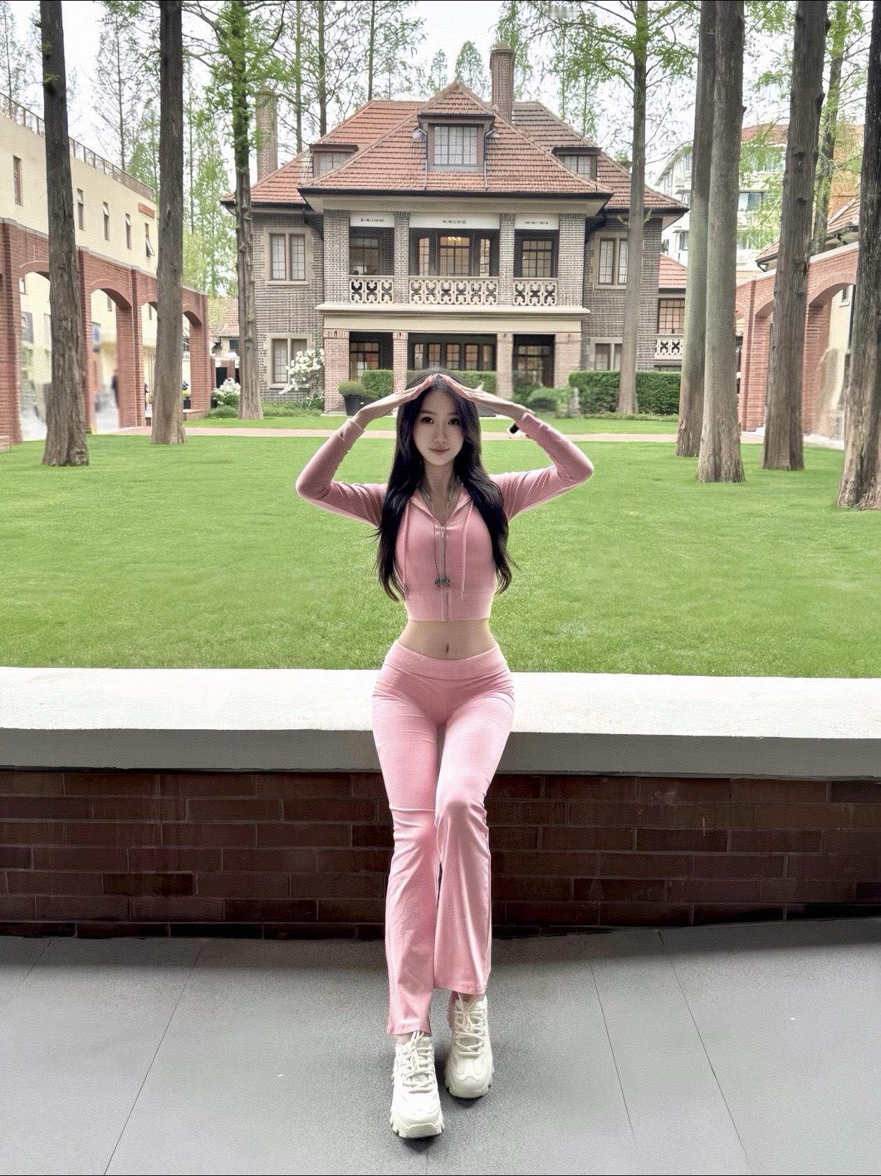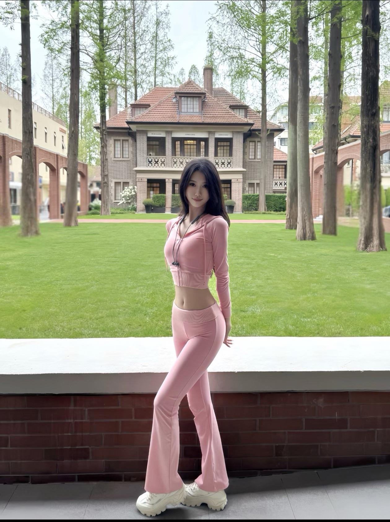 冬日暖阳下的粉色少女,笑靥如花