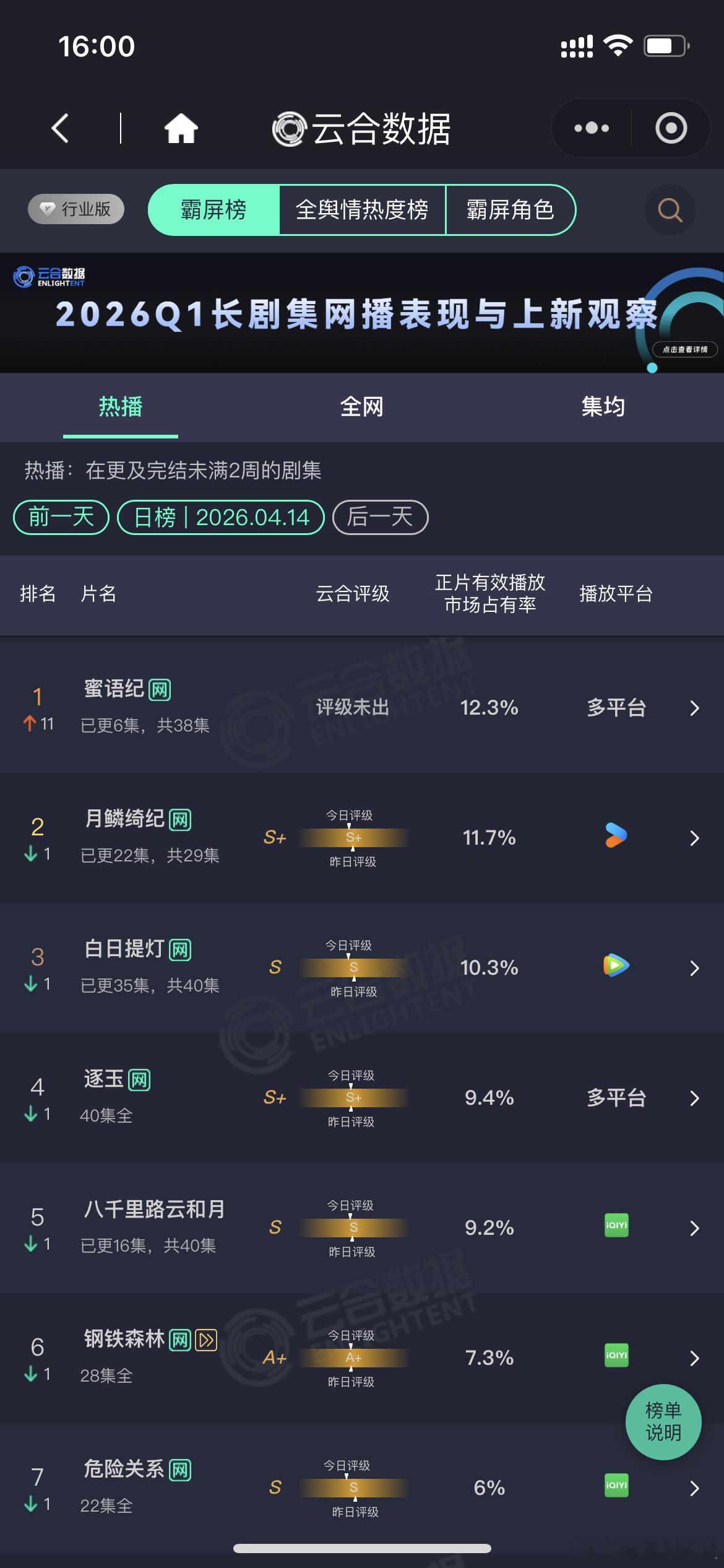 蜜语纪次日云合登顶蜜语纪云合12.3%蜜语纪12.3%