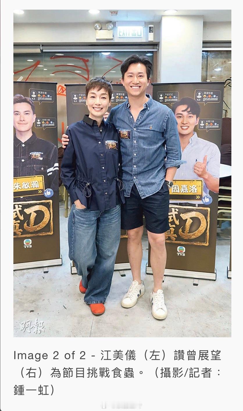 江美儀爆在內地開工見過其他女星探班,否認陳曉華來見朱敏瀚,是葉蒨文探曾展望,葉更事先去食肆探店向男友匯報,「曾展望飲食揀擇,為拍節目拋低很多包袱,甚至挑戰食蟲,很大進步,朱敏瀚最大膽,難頂食物全部肯啃」。她稱曾展望頂嘴最叻,說60歲是阿婆,即是說她5年後變「阿婆」。曾展望隨即道歉說自己認知有問題講錯,現代人到80歲都是壯年,「美儀姐都要負少少責任,佢保養好好,睇起來40歲未到」。他承諾請食飯補鑊,江美儀說跟4男生拍節目好開心,希望拍續集。