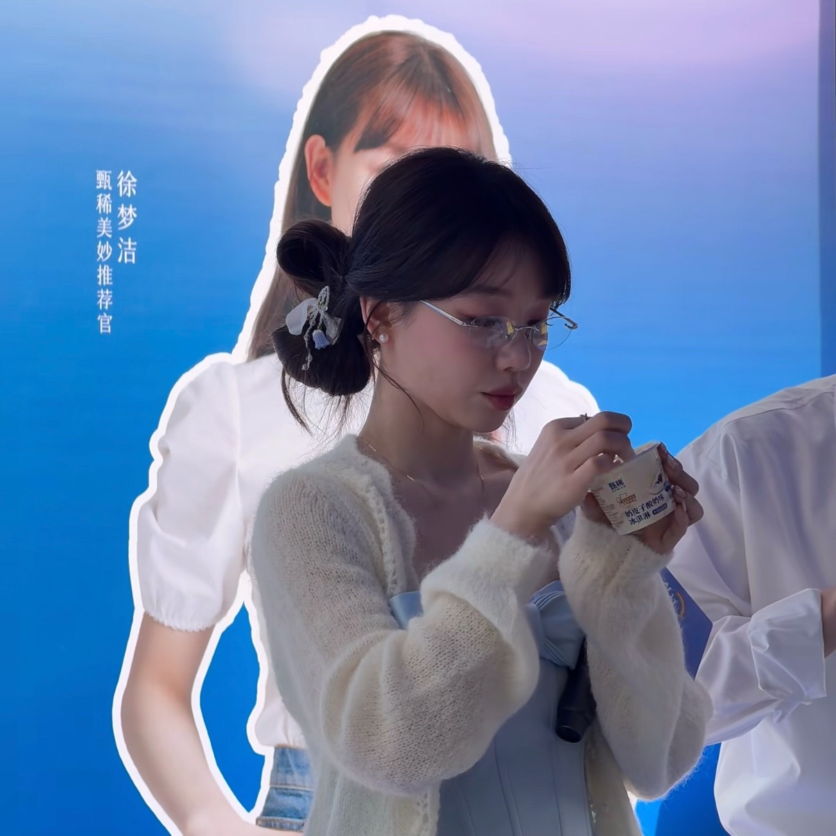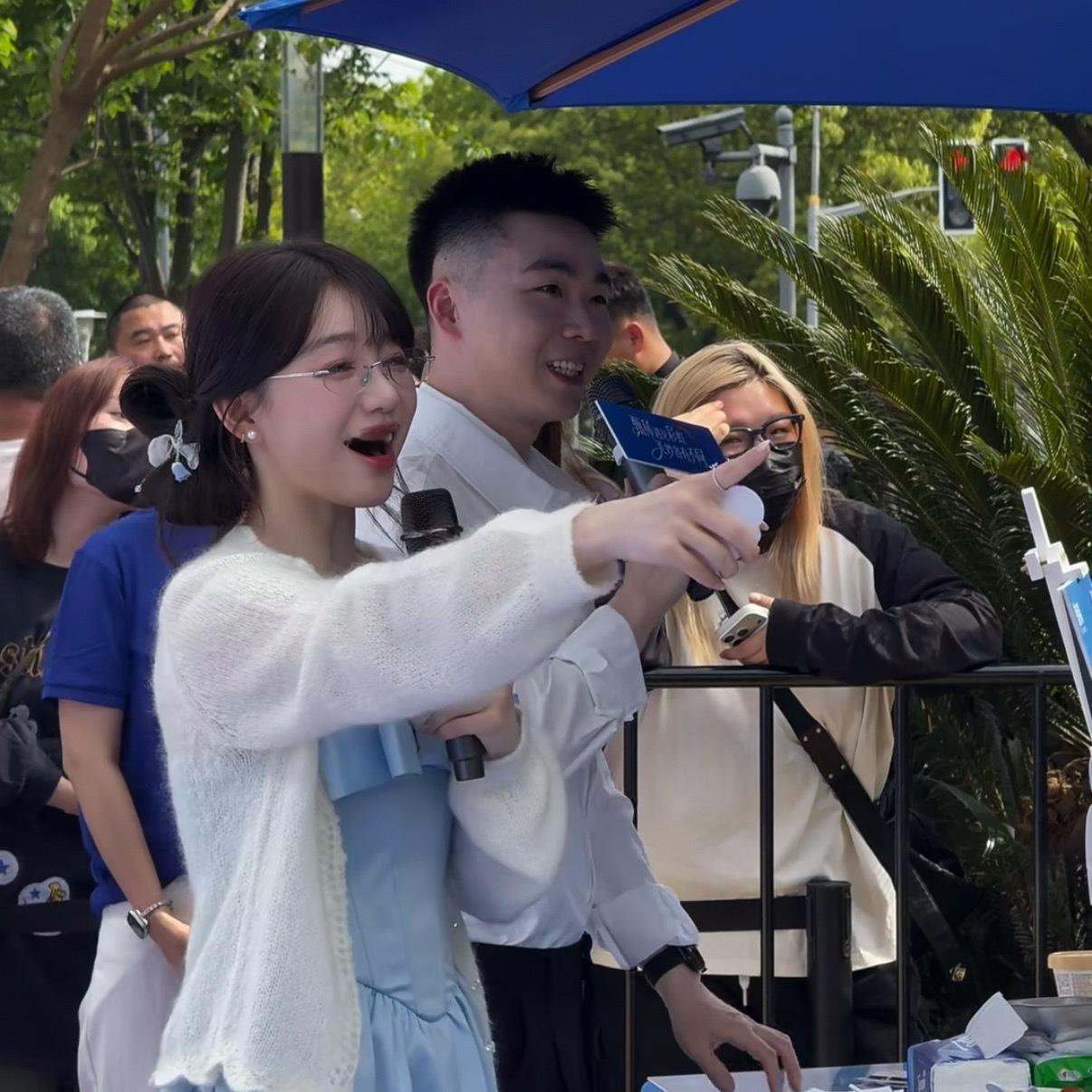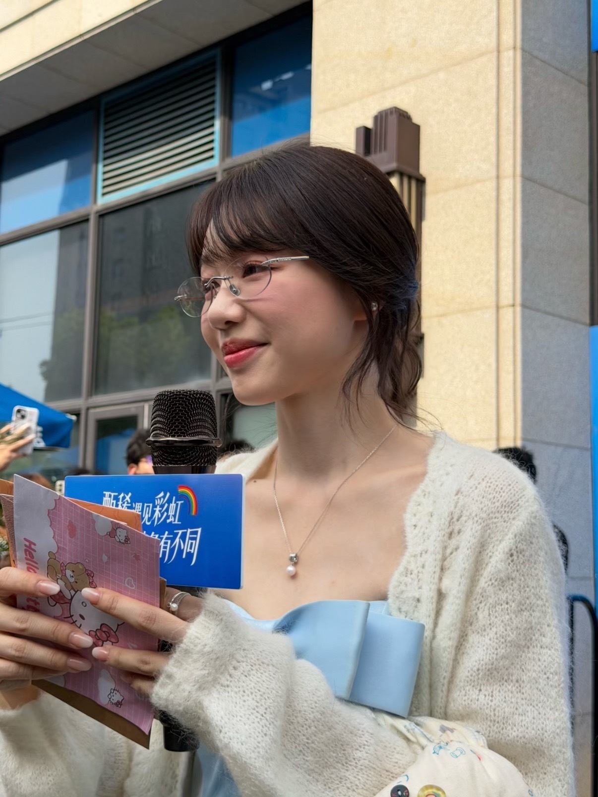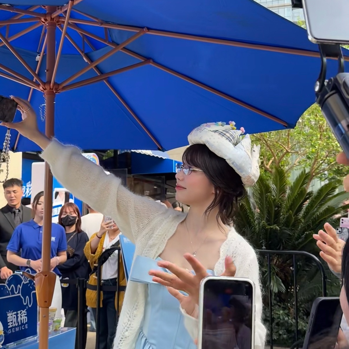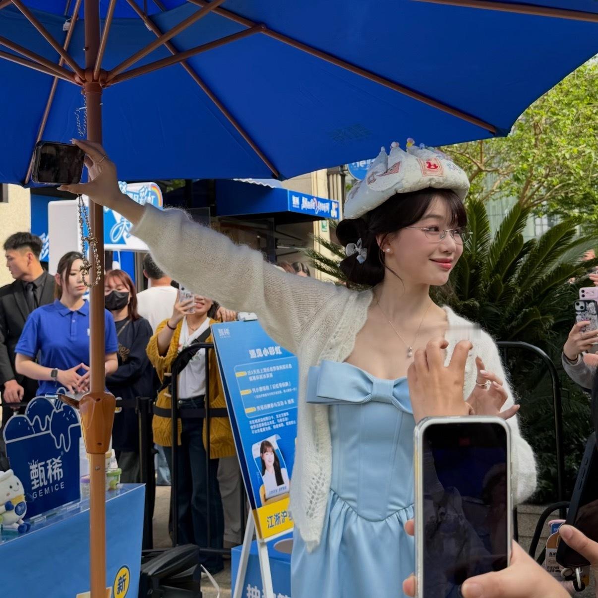 到底是谁在偶遇这个小蛋糕啊,一日店长小彩虹怎么这么宠粉啊,现在去还来得及吗徐梦洁蓝色蝴蝶结裙徐梦洁蓝色蝴蝶结裙造型