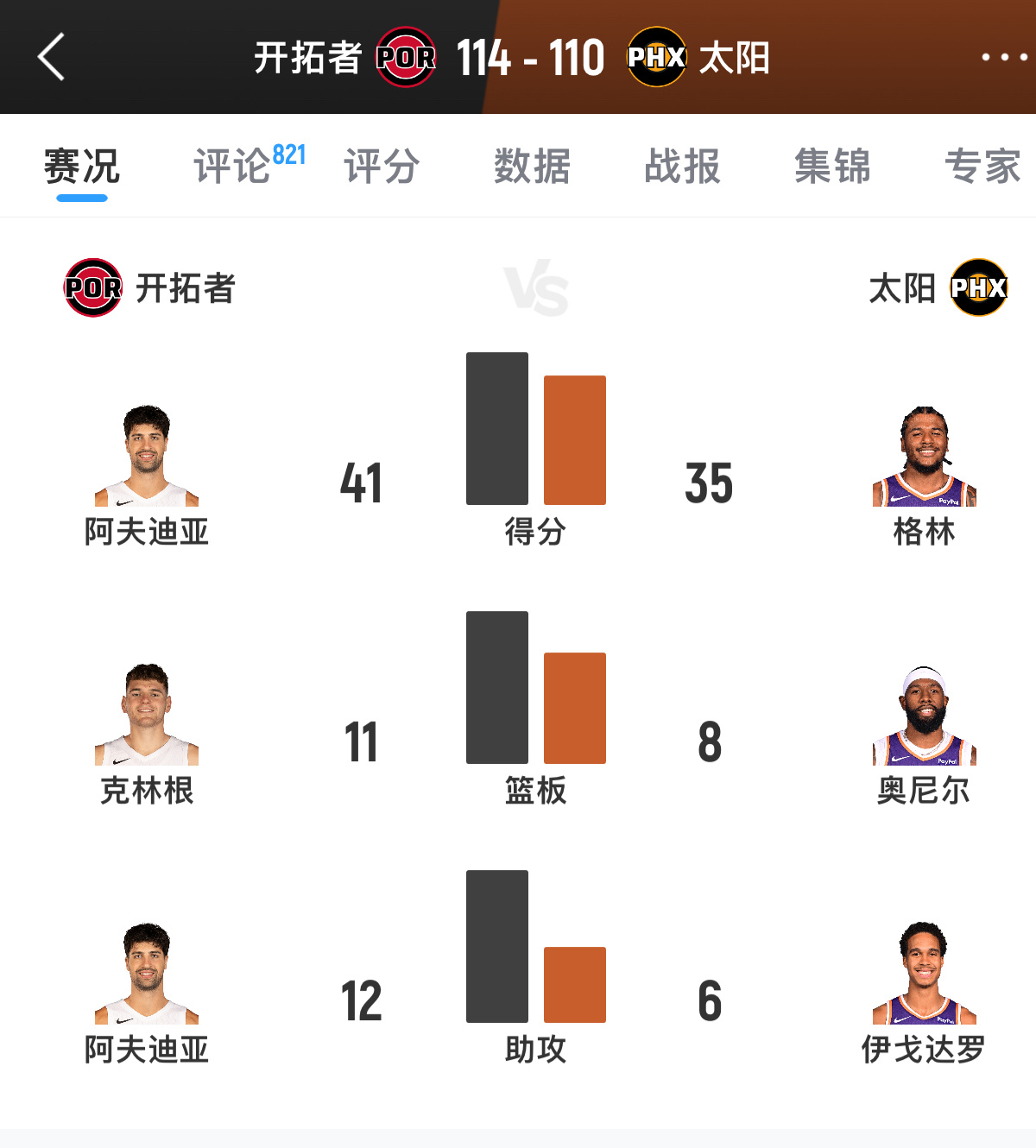附加赛真的刺激,阿夫迪亚真强的可怕啊,全场轰下41分12助攻,拒绝太阳的反扑,帮助球队在客场战胜菲尼克斯太阳队,并锁定西部第七,季后赛首轮将战马刺!