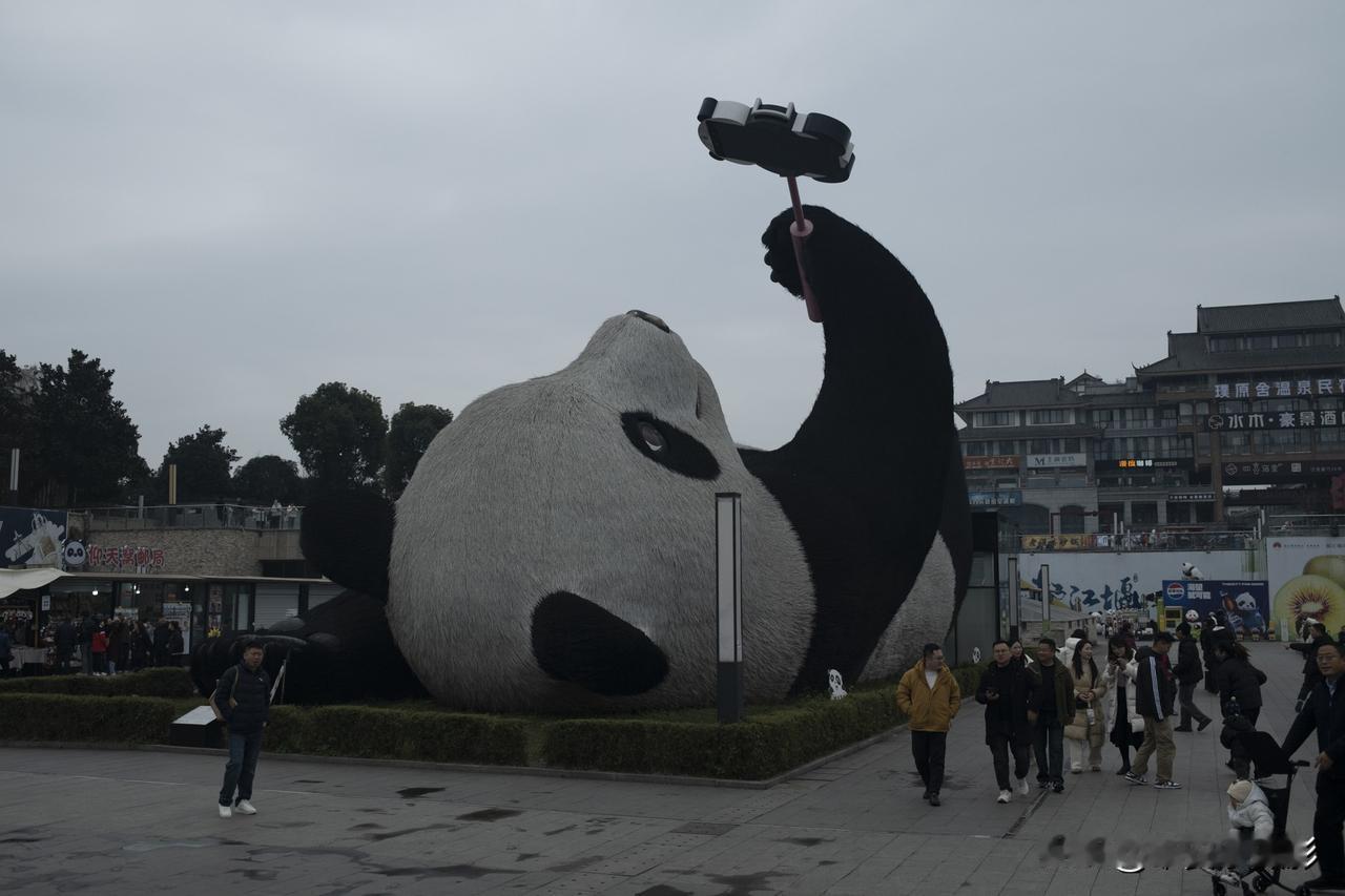 成都春熙路上的熊猫爬墙,仰天窝广场,熊猫谷。熊猫拍照打卡地 仰天窝熊猫广场