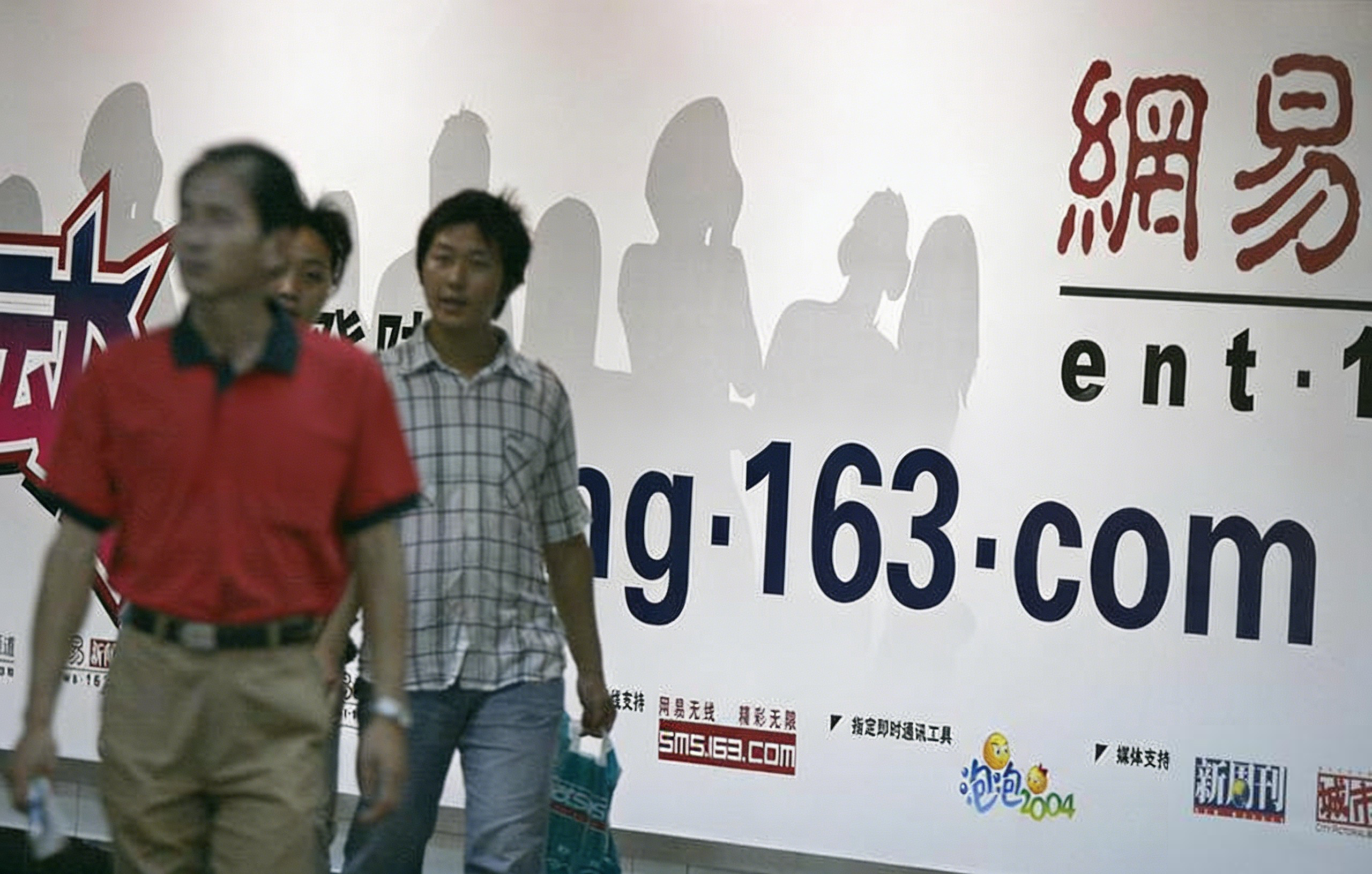 【来自投稿】2005年网易进入手机游戏市场 首款游戏定价6元2005年7月11日,网易对外展示了其163.com的移动百宝箱,推出了教父之地狱猎手等多部取材好莱坞大片的手机游戏。这意味着网易拉开全面进军手机游戏的大幕。照片是上海行人从一网易163.com的广告牌前经过。 摄影师:吴长青
