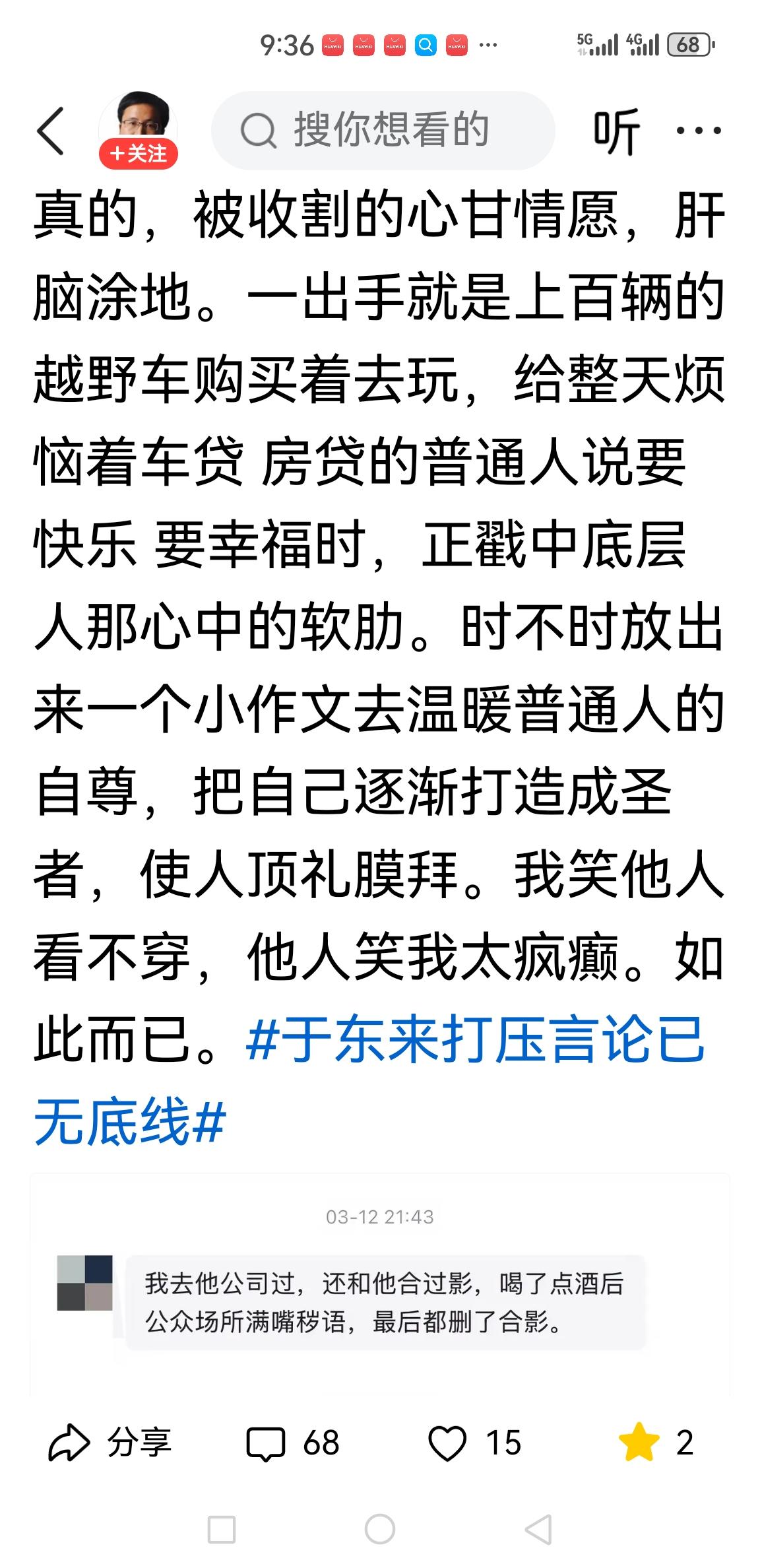 又来找胖东来麻烦了? 资本就那么不堪么?资本家于东来捐款,花钱给管理层送车有罪么?宋专家死嗑胖东来,到了登峰造极无以复加的疯狂地步,刹车失灵了…… 宋清辉死磕胖东来,一边高调宣称出手购置百辆豪车玩乐,一边无视背负房贷车贷、为生计奔波的底层大众,最后还发小作文谈幸福收割好评,尽显精致利己的精英傲慢。 他刻意制造对立,用奢靡生活标榜成功,却对普通人的生存压力视而不见。批判胖东来本是商业观点之争,却非要踩底层共情,把自己的潇洒建立在漠视大众焦虑之上。 所谓幸福小作文,不过是脱离现实的空洞鸡汤。既不懂普通人的柴米油盐,也不尊重胖东来对员工与消费者的真诚,只靠制造话题博眼球,用轻飘飘的文字粉饰精致利己。这种站在云端指点江山、消费大众情绪的姿态,看似清醒,实则冷漠又虚伪。 无法理解,一个经济学专家不搞研究,整天琢磨着找名家名店碰瓷,利益之外,有何图谋呢?于东经营方式