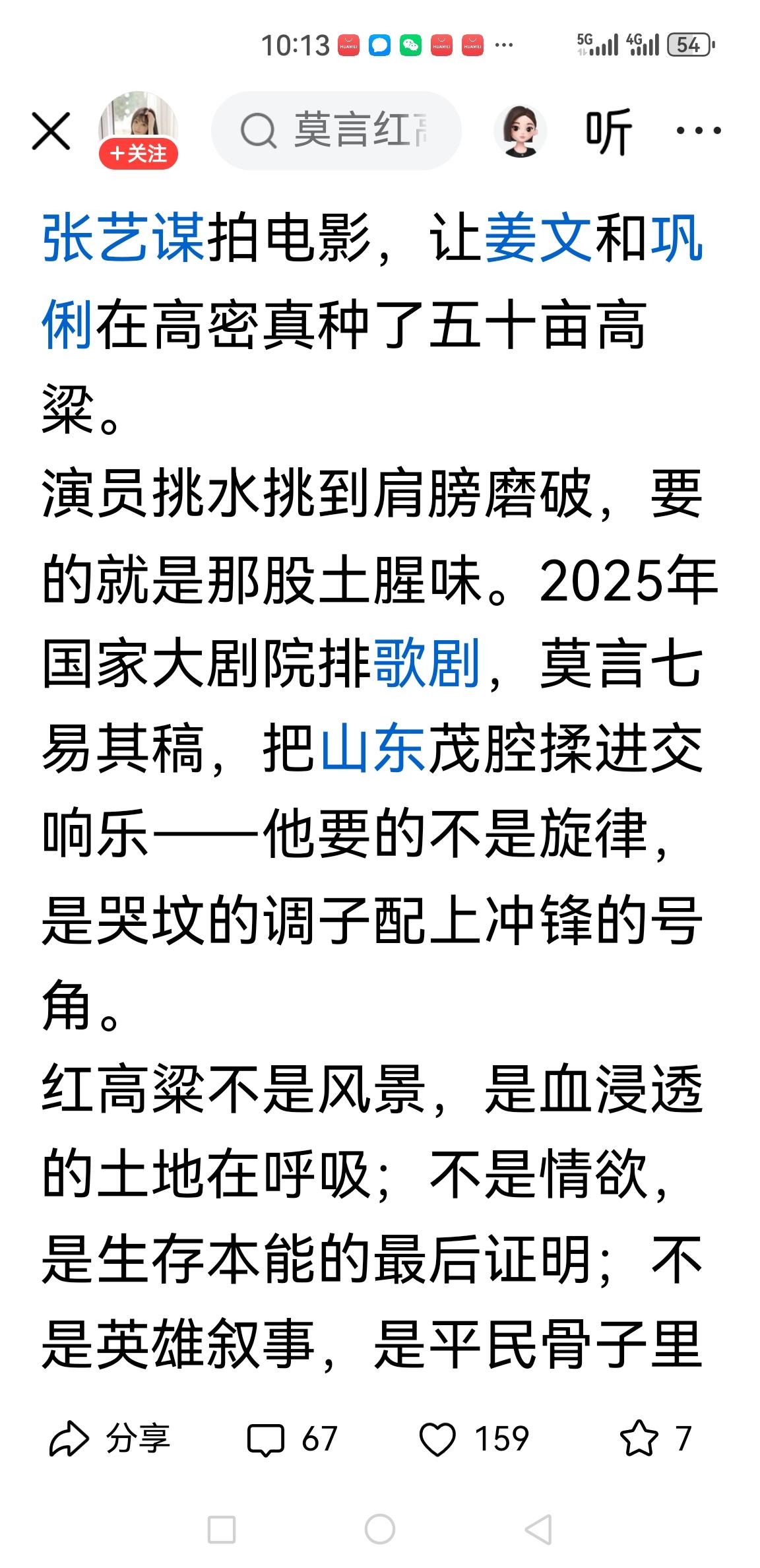 谁能真的读懂《红高粱》?下图小作文把莫言的“英雄情结”烘托到了极致!藏在纯文本评析背后的宏大爱国叙事,写得荡气回肠。估计莫言当时都没有达到如此崇高的写作境界,却在“七易其稿”后的歌剧改编里,升华了……评论文章重点写道: 2025年国家大剧院排歌剧,莫言七易其稿,把山东茂腔揉进交响乐——他要的不是旋律,是哭坟的调子配上冲锋的号角。 红高粱不是风景,是血浸透的土地在呼吸;不是情欲,是生存本能的最后证明;不是英雄叙事,是平民骨子里长出的、带刺的觉醒…… 看了汗牛充栋的莫言歌颂和莫言批判,再比对一下这篇文章,大家说说看,是不是低估了大师的格局?[呲牙]