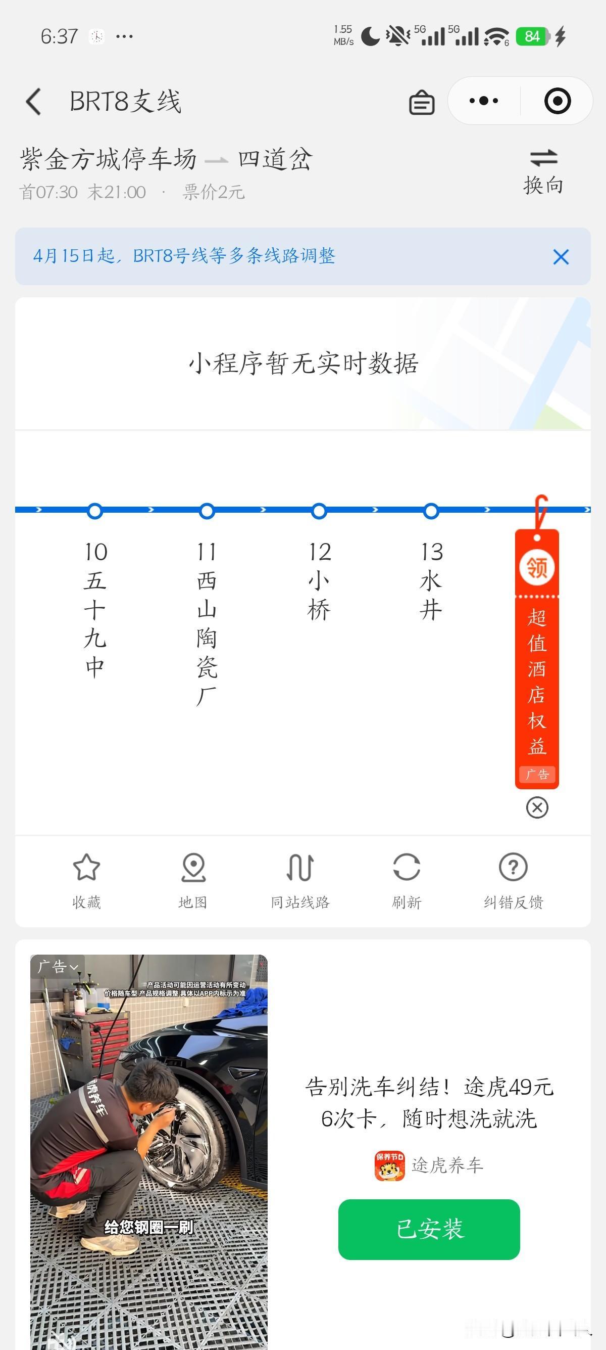 车来了APP更新了!BRT8时刻表出炉,早晚高峰几分钟一班?快看! 老邻居们,昨晚我还担心坐车没谱,今早一刷“车来了”APP,发现BRT8号线和支线的线路图、发车时刻表都已经上线了!虽然显示“暂无实时数据”,但计划时刻表清清楚楚。我仔细研究了一下,给大家划重点: 一、主线(人民广场—酉众和综合市场) 两个方向首末班不同,注意! · 人民广场→酉众和:首班07:30,末班23:30 · 酉众和→人民广场:首班07:20,末班23:00 早高峰(07:20/07:30-10:00):发车间隔大约5-8分钟一班,最密的时候2-3分钟就有一趟。比如西众和方向07:20之后,07:30、07:39、07:40……几乎是连发。 平峰(10:00-16:00):间隔6-7分钟左右,从时刻表看基本是5-7分钟一趟。 晚高峰(16:00-20:00):间隔4-6分钟,加密明显,16:03、16:09、16:14……下班回家不用等太久。 夜间(20:00-23:30):间隔逐渐拉长到8-10分钟,最后一班23:30从人民广场发出,西山往市区的末班是23:00,别记混了! 二、支线(紫金方城停车场—四道岔) · 首班07:30,末班21:00 · 时刻表没有详细列出,但末班21:00比较早,紫金城的邻居注意:晚上9点以后就没有支线了! 需要换乘其他线路或提前规划。 支线全天班次应该不会太少,但首日建议大家预留充足时间。 三、几个重要提醒 1️⃣ 站牌信息还没更新:虽然APP有了,但物理站牌上可能还是空白。明天出门前先打开“车来了”查一下,别凭经验等车。 2️⃣ 主线不停四道岔:再次强调!西山往市区方向,去西山塑料厂坐BRT8主线,别跑四道岔去等。 3️⃣ 紫金城换乘路线:支线到四道岔→换BRT7→到104团中学至环卫处之间任一站→换BRT8主线。全程免费换乘,但要多留点时间。 4️⃣ 支线末班21:00:晚上从市区回紫金城,一定要在21:00前到四道岔坐上支线,否则就得打车或换其他公交了。 5️⃣ 首日可能堵车:新线路开通,司机、调度都在磨合,加上西泉街部分路段还在收尾,建议提早出门10-15分钟。 四、小编唠叨 看到APP里的时刻表,心里总算踏实了一些。早高峰5-8分钟一趟,比当年2007路高峰期挤不上去的情况应该好很多。18米长车,运力也大。 不过站牌、告示、护栏这些小细节,还得继续催。我已经把问题再次反馈给相关部门,希望能尽快完善。 转发给邻居们,让大家都知道发车时间! BRT8试运行 车来了 西山出行